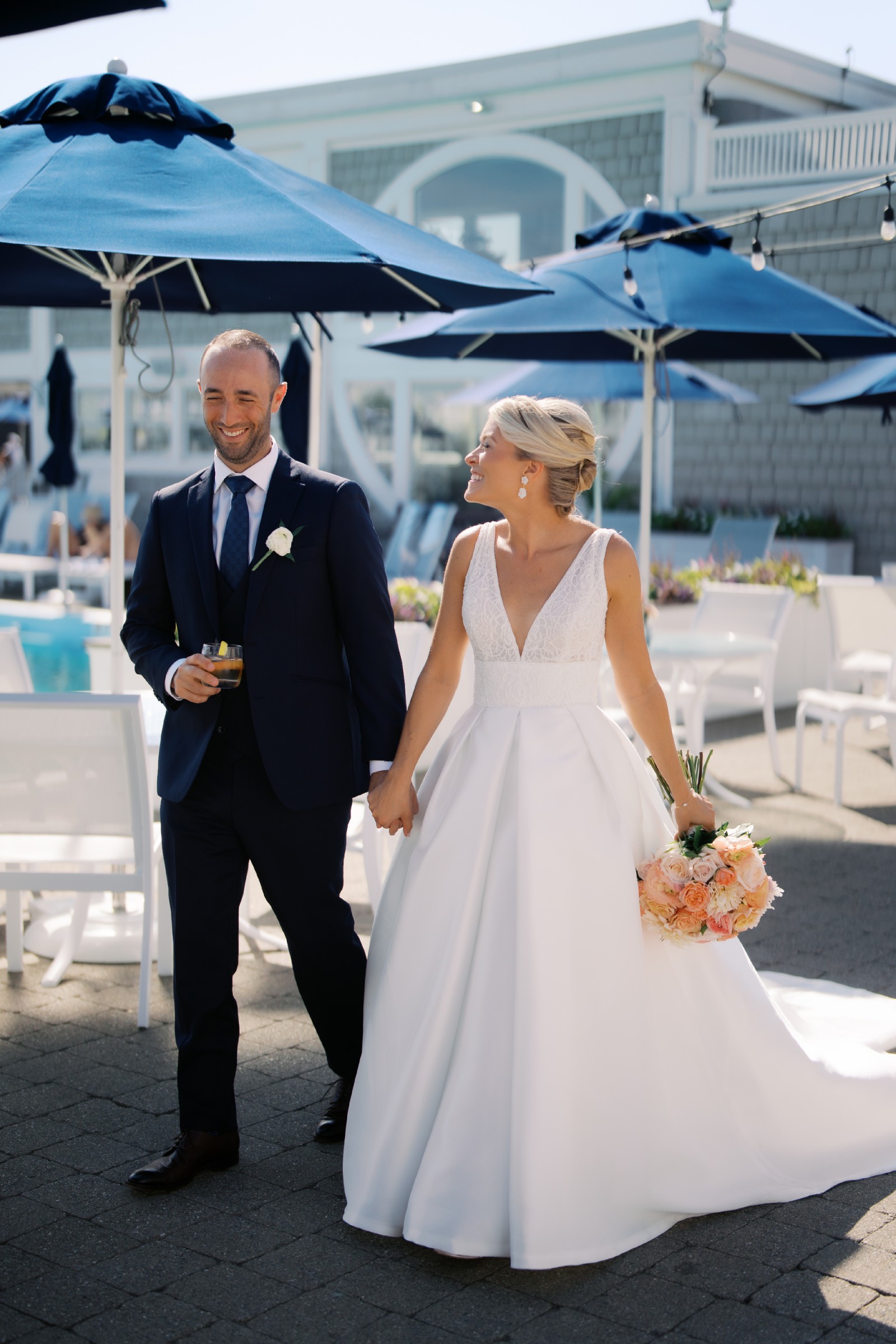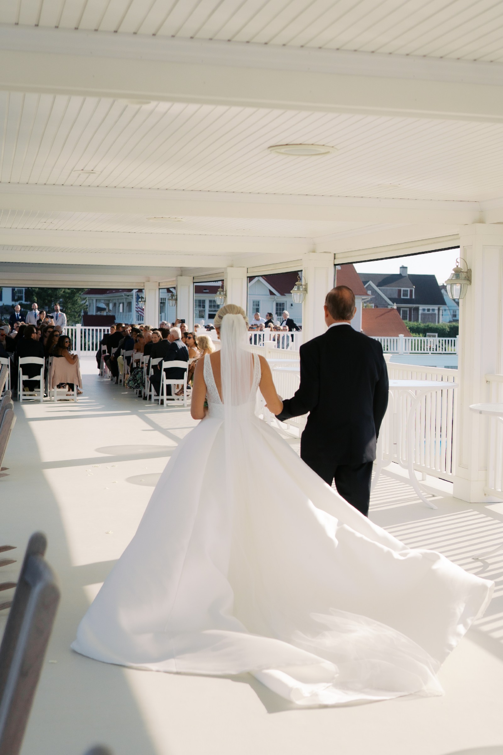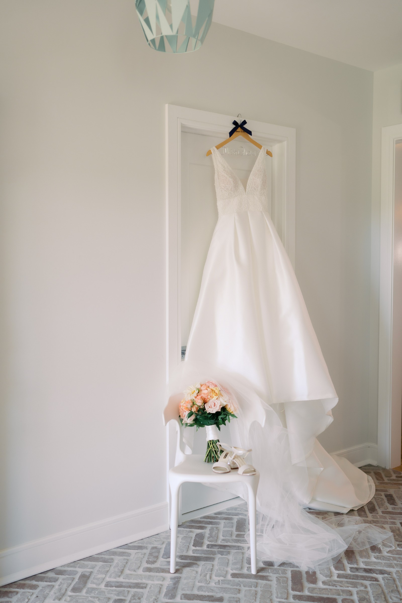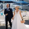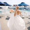 Aire Barcelona Alma dress by Rosa Clara made in 2025. Description: Breschia Brocade a-line dress with floral beaded bodice, cummerbund waist.