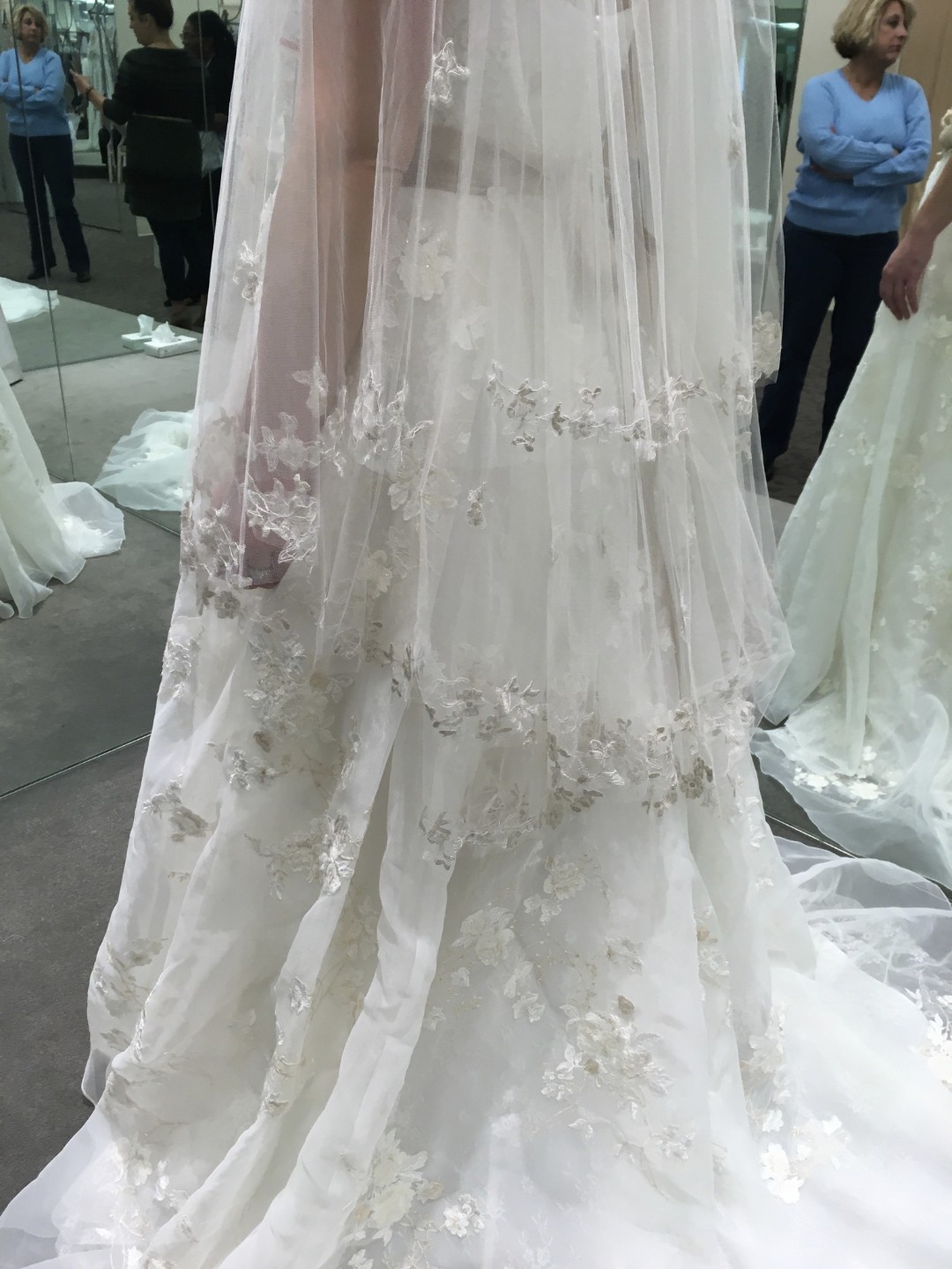 Professionally added bustle to lift the train for the reception
