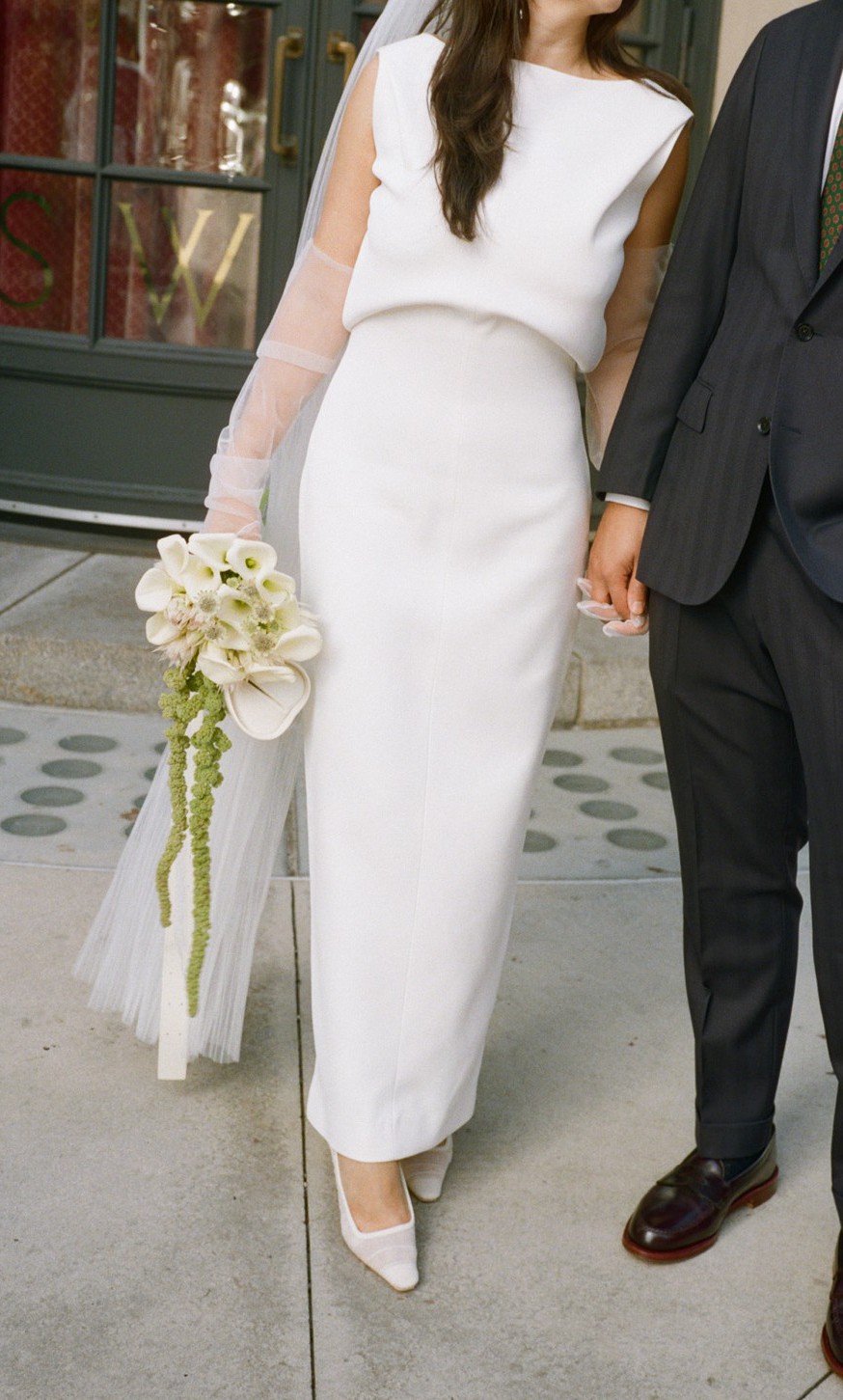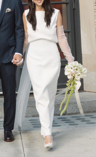 i love this dress so much. it’s classic and refined. worn once for my city hall wedding. (: could be bridal but also great for formal events. the bonded crepe material is luxurious and sucks you in. SO FLATTERING. it is the construction and fabric that begs this price point.