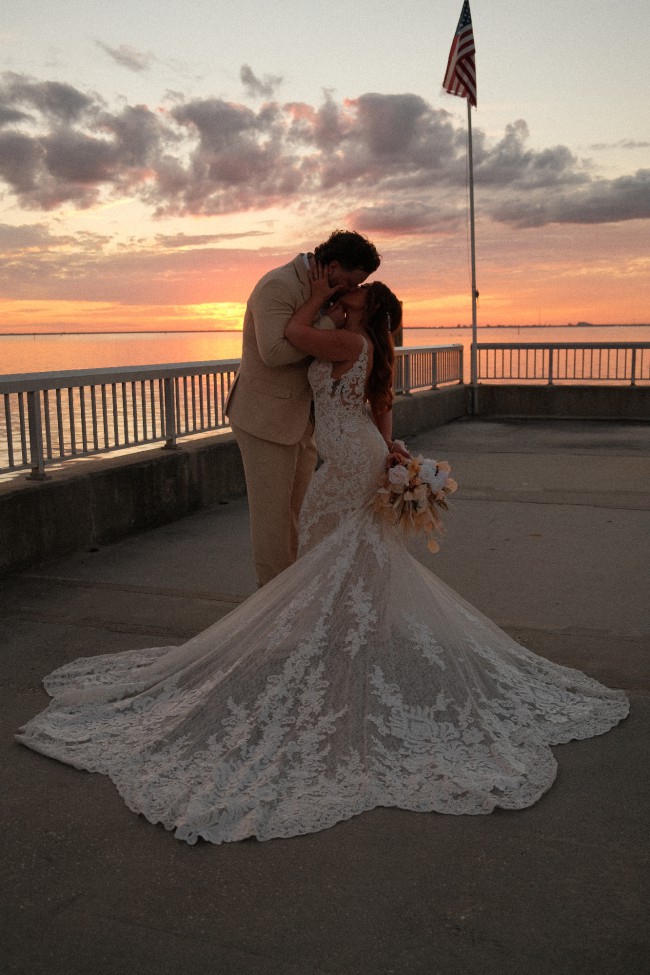 This dress was only worn for practically three hours, so it is in incredible, near-perfect condition! Alterations: Professionally altered for a 5'0" bride wearing 4" heels.Extras: I still have all the original lace from the alterations included in the dress case!