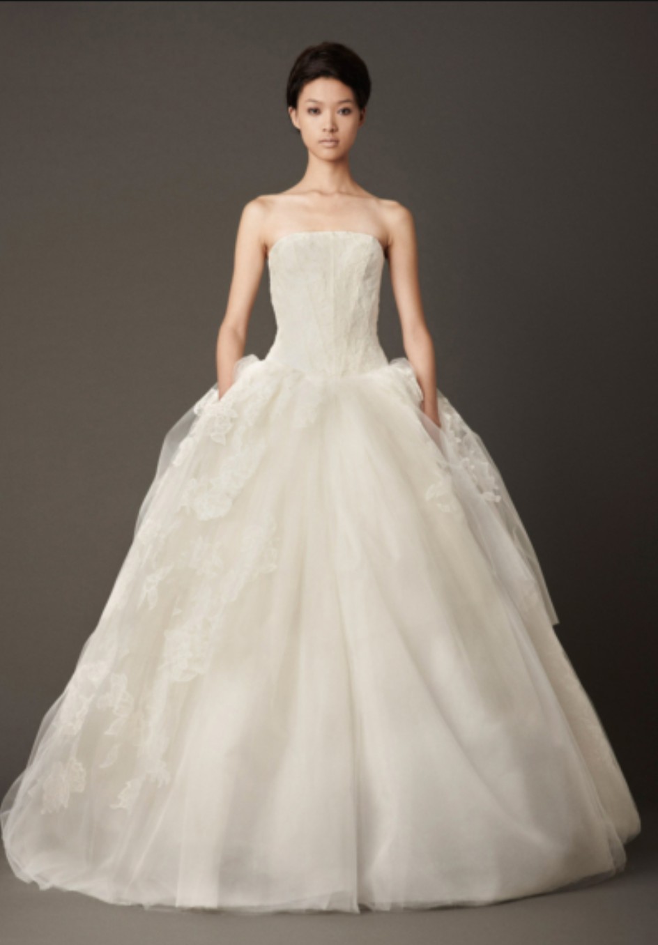 Size 4 Vera Wang luxe Lisbeth dress with beautiful and stunning laces, the traditional princess ballgown Silhouette is definitely a dream come true wedding dress. Very new, used in my own wedding day (indoor and outdoor) and professionally dry cleaned by experts for lux dress cleaning. Excellent condition like new. The dress includes an original certificate for authentication. The dress is not altered, size 4, and should fit size 2 - 4 (I lost weight right before wedding as size 2 and it fits me as well) The back is not a cut-out.