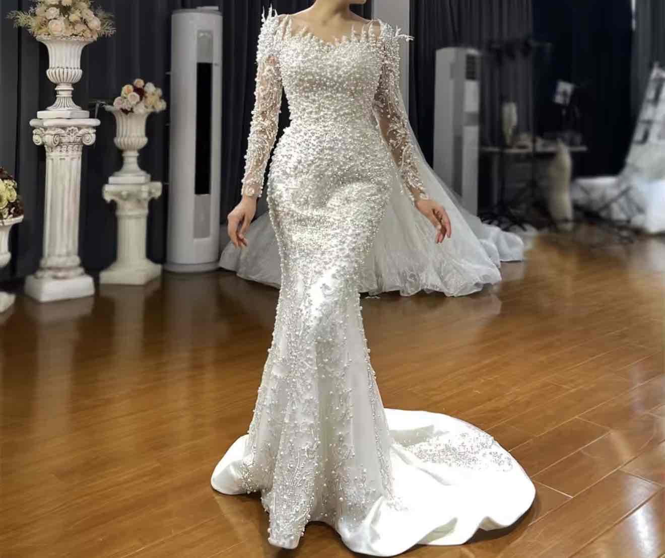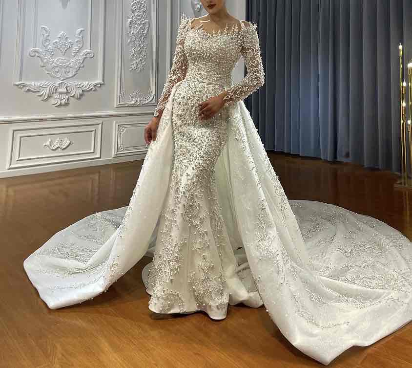 New mermaid dress with detachable train- free shipping based on proximity to me (Michigan). Never worn. Corset back so can be tightened or loosened as needed