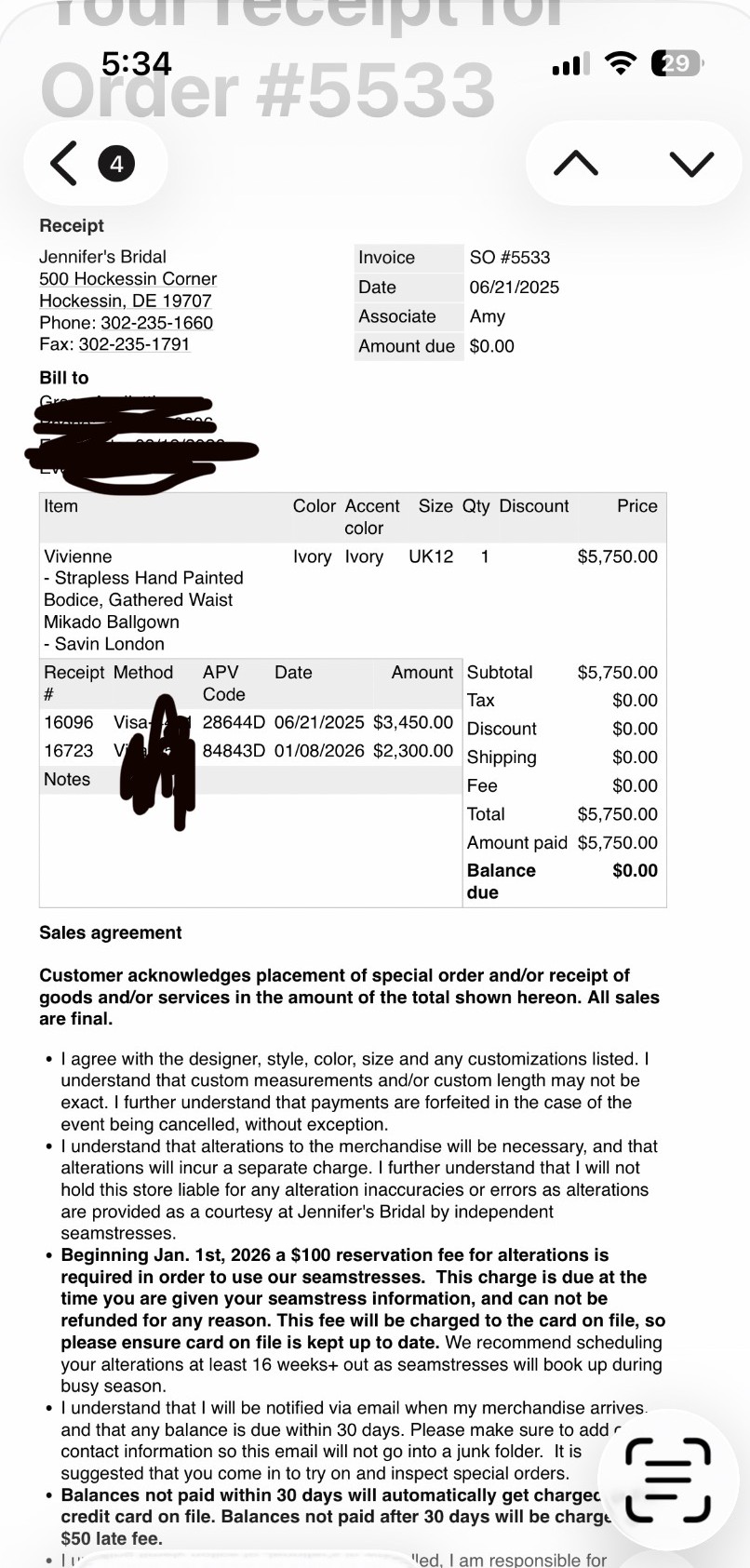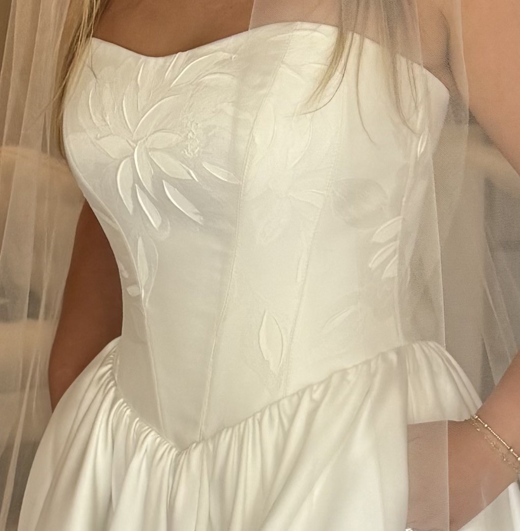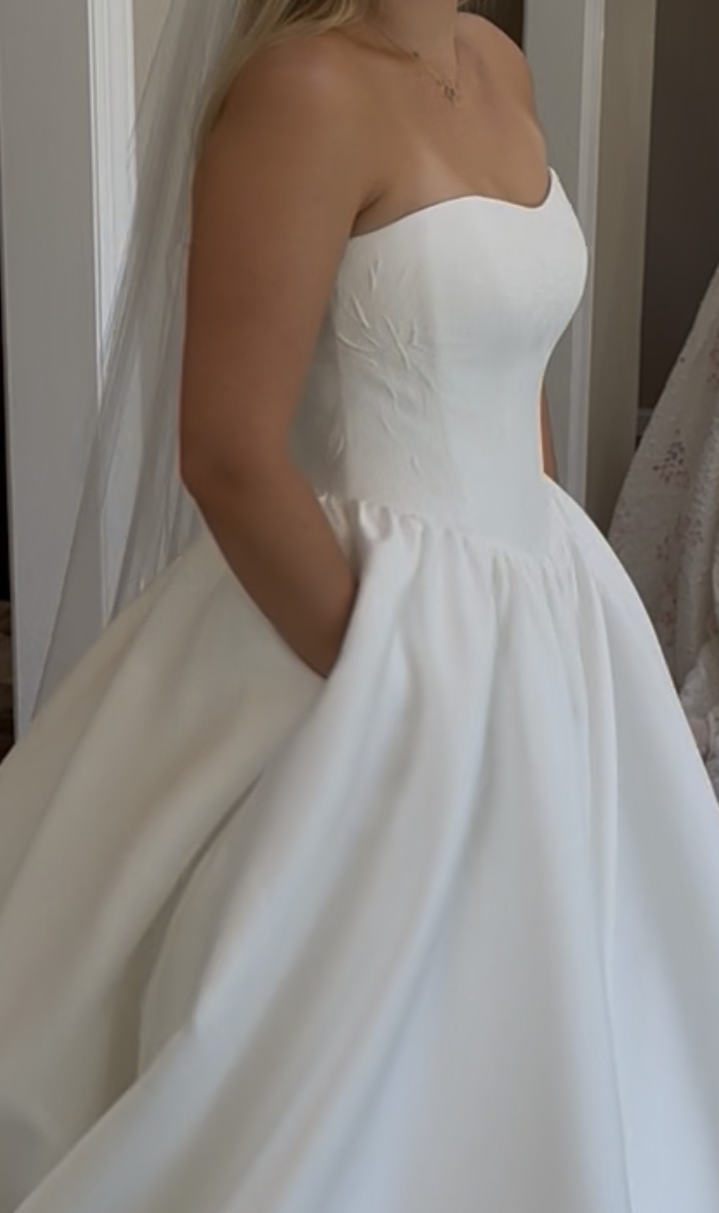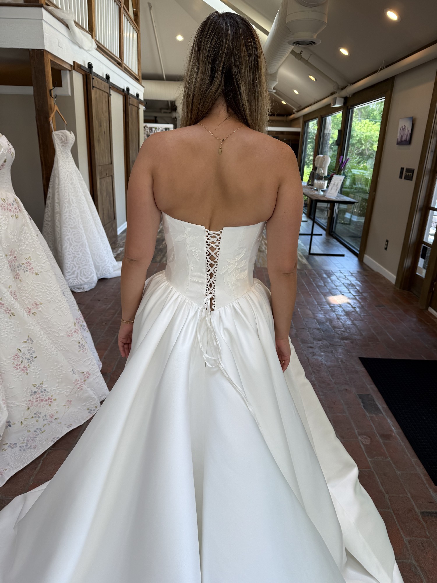 Bought 10/2025 and has been stored at bridal store. Has not even been tried on. Completely brand new and ready for your special day!