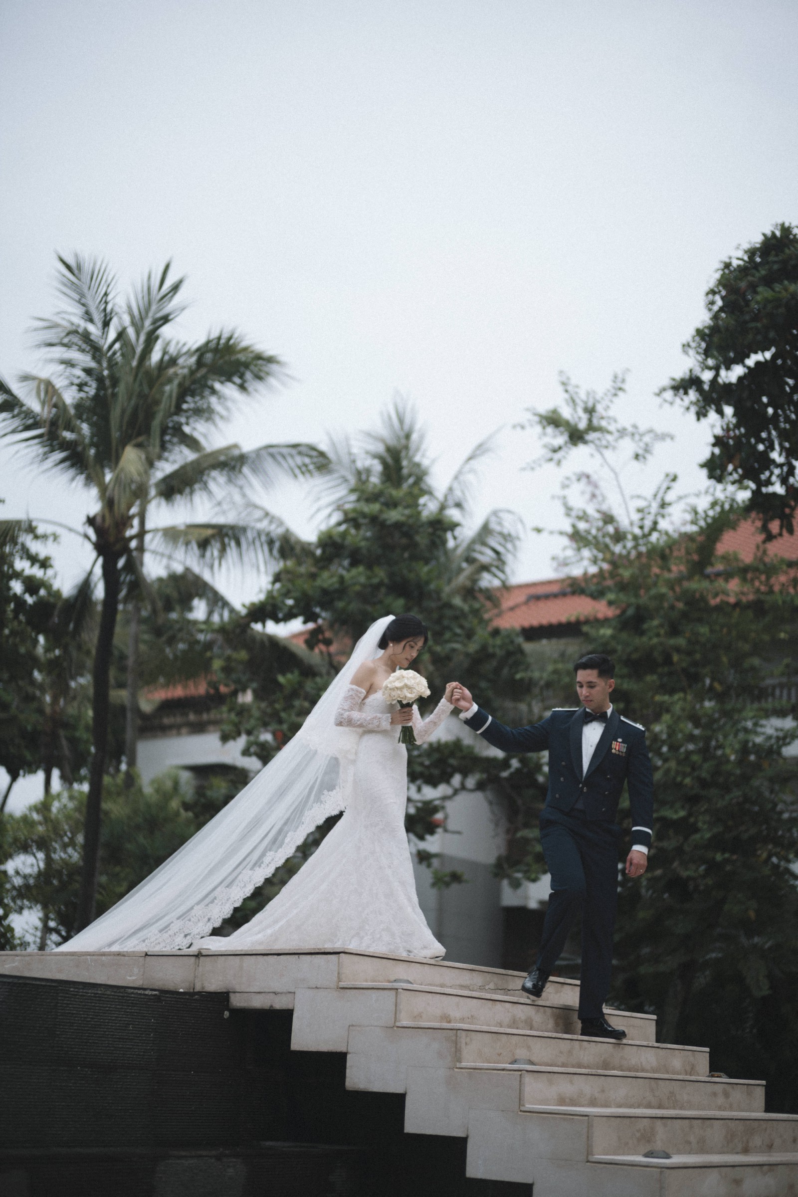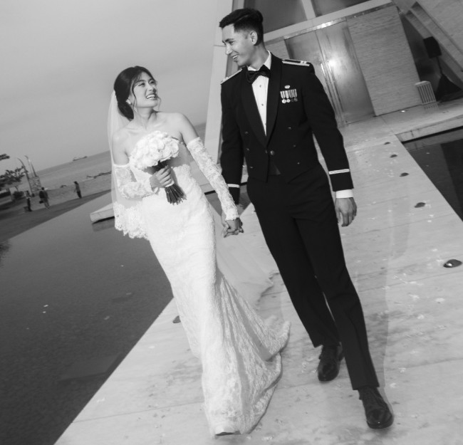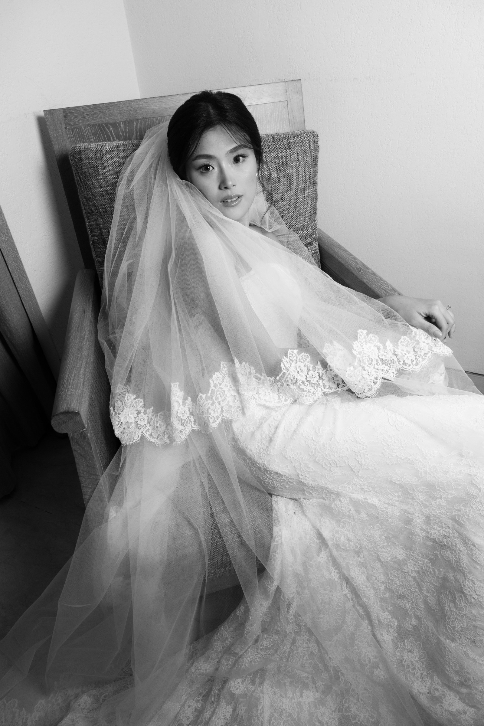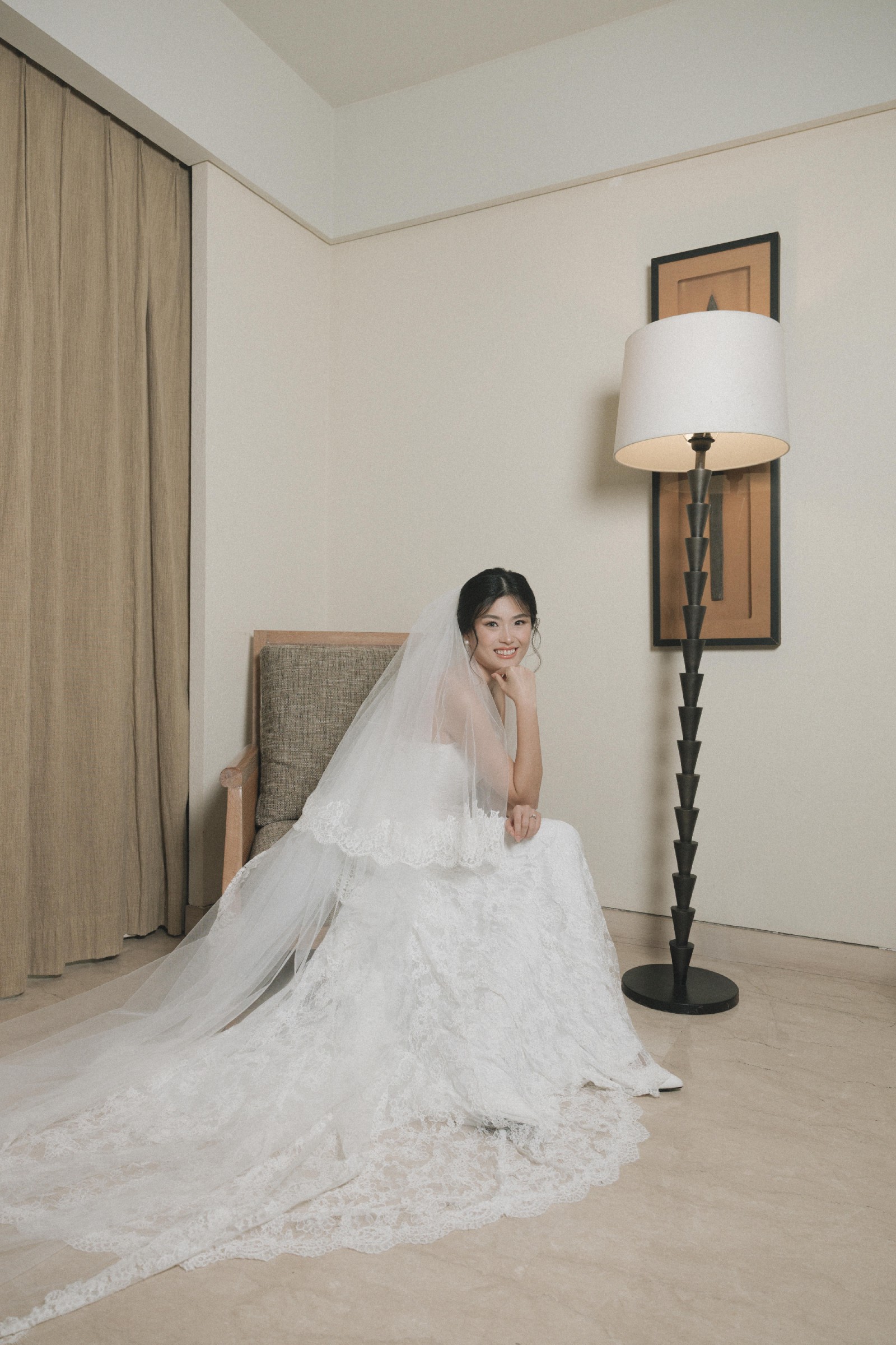 I absolutely felt amazing in this wedding dress. I tried on 30+ wedding dresses around Paris until I finally said “YES” to this dress. It is a beautiful elegant lace wedding dress that is not only versatile (you can have 2 looks - with and without gloves) but also comfortable. Depending on how you wear the gloves, it can also give you the illusion of an off-shoulder dress without the discomfort and restriction of an actual off-shoulder dress. I was able to move freely in this wedding dress.