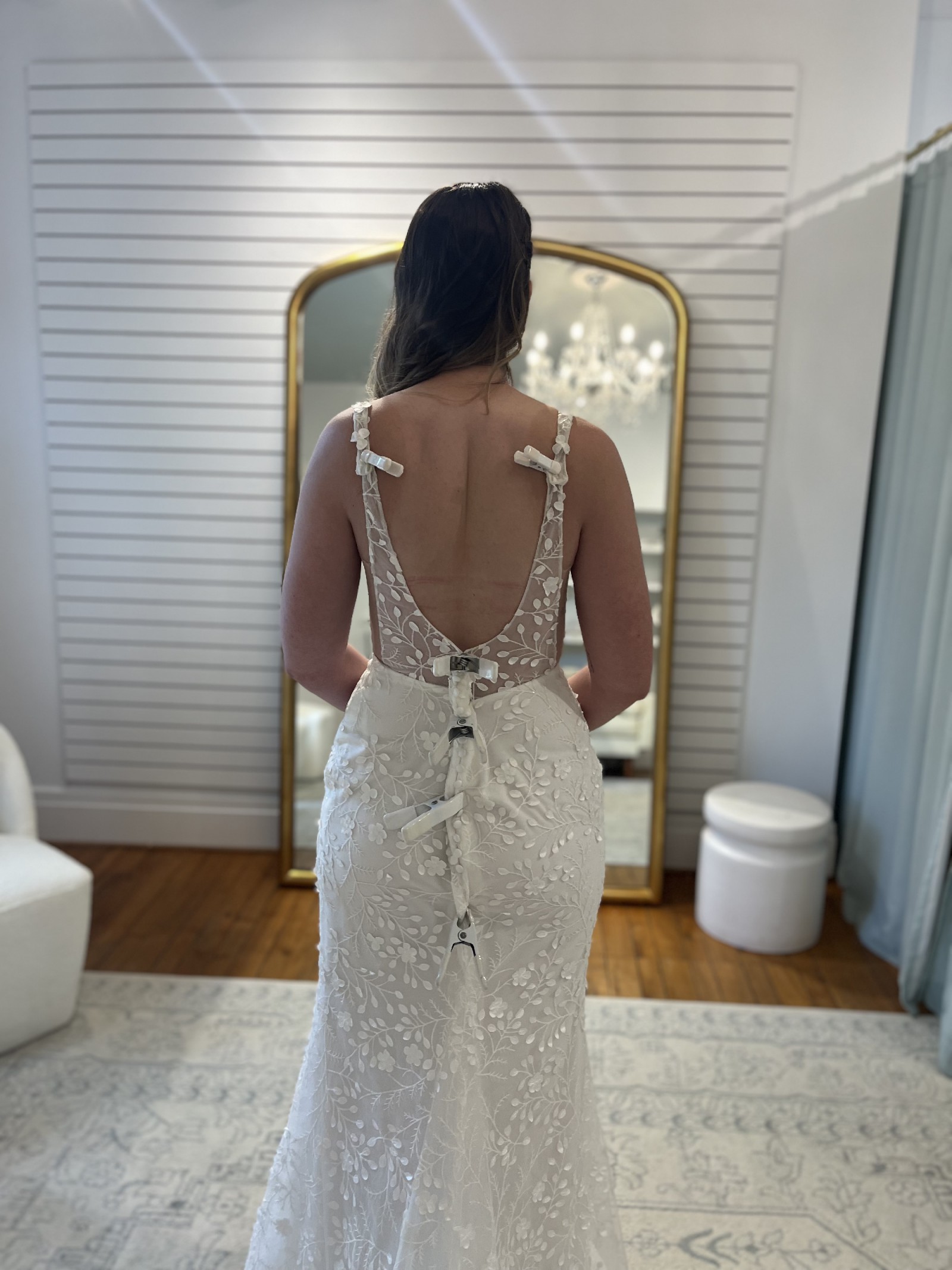Made with love Huxley is a fitted corset top dress with delicate 3D flowers throughout. I did have it altered and have included the measurements (I’m usually a size 4-6 in regular clothing). I ended up wearing a different dress so it is new. Measurements listed are the measurements of the dress, not of myself