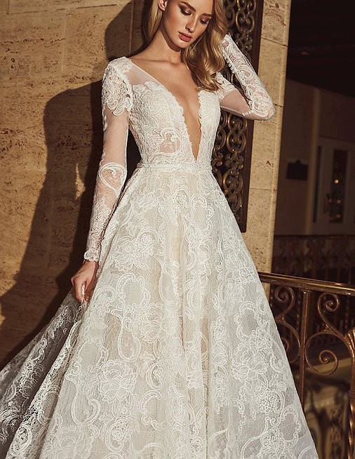 Lace, Illusional Deep V-Neck, A-Line