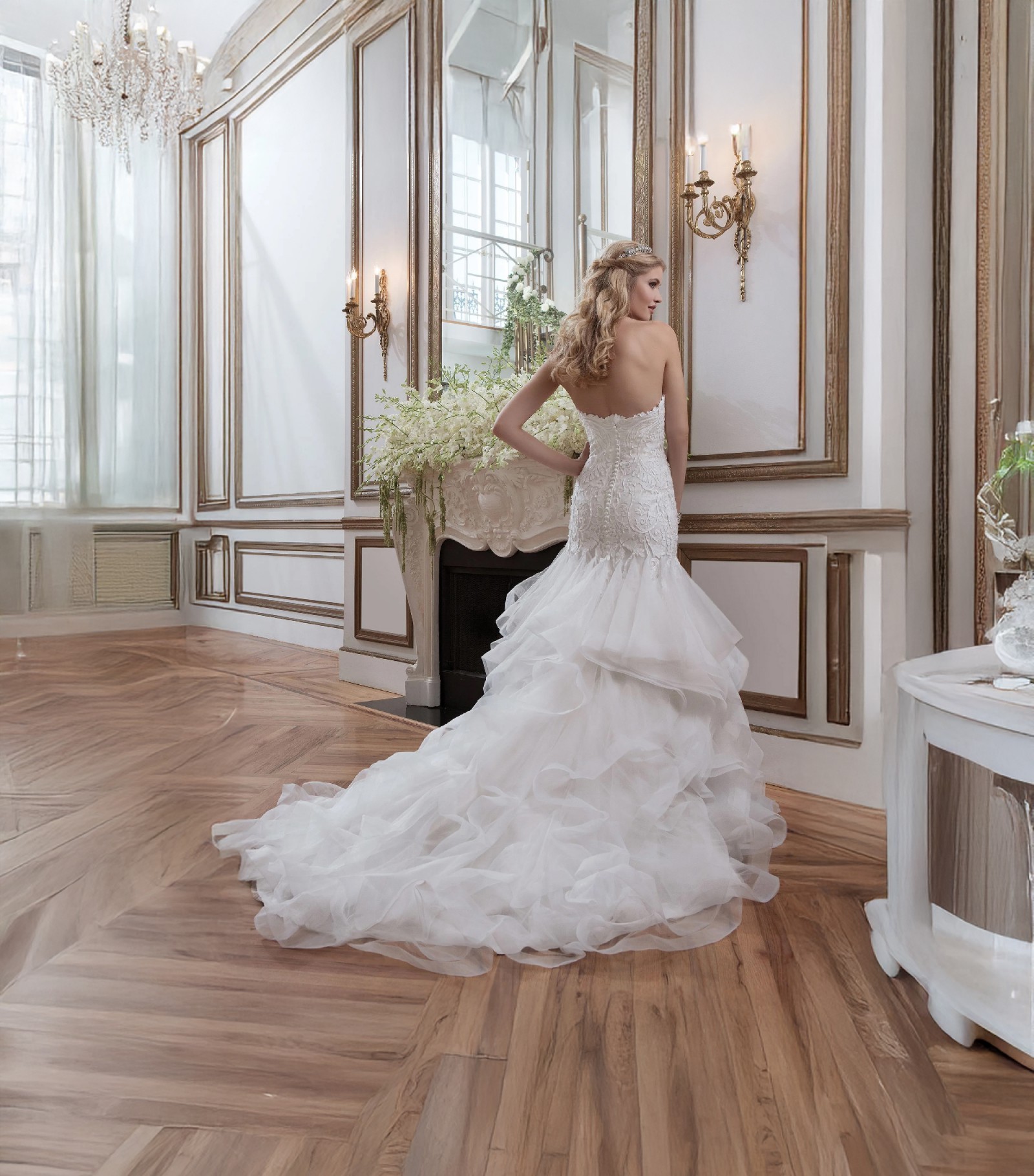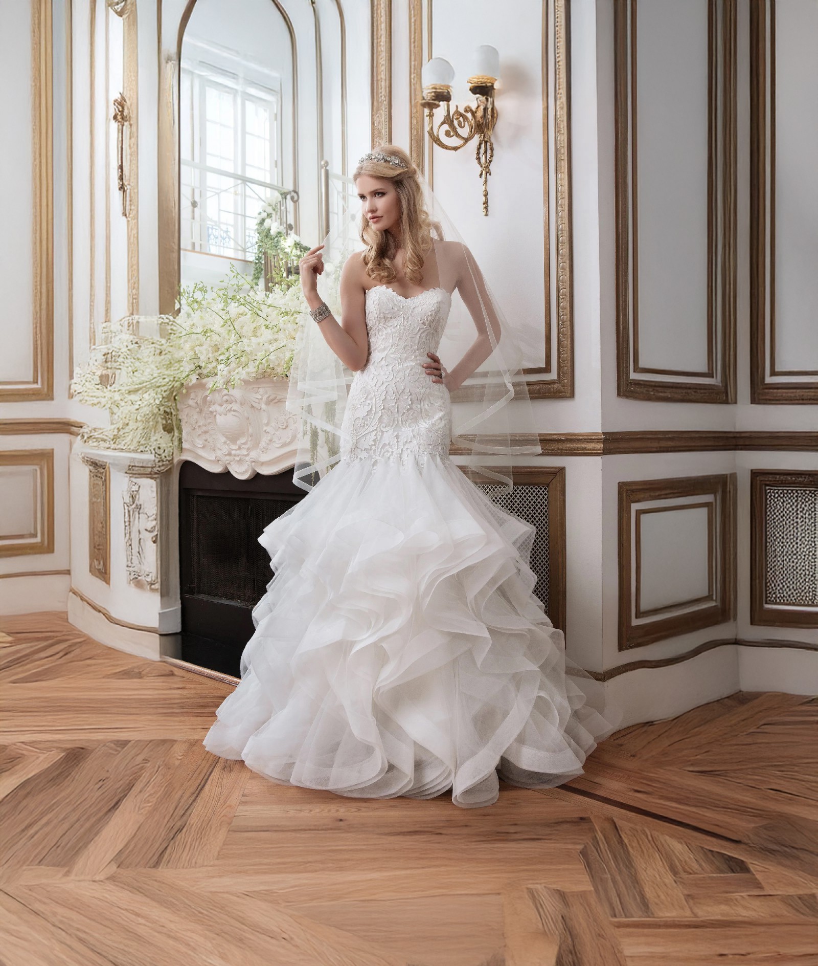Laser Cut Appliqué Organza Fit and Flare Wedding Dress