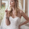 Laser cut embroidered satin; tulle and Organza fit and flare highlighted by a sweetheart neckline.