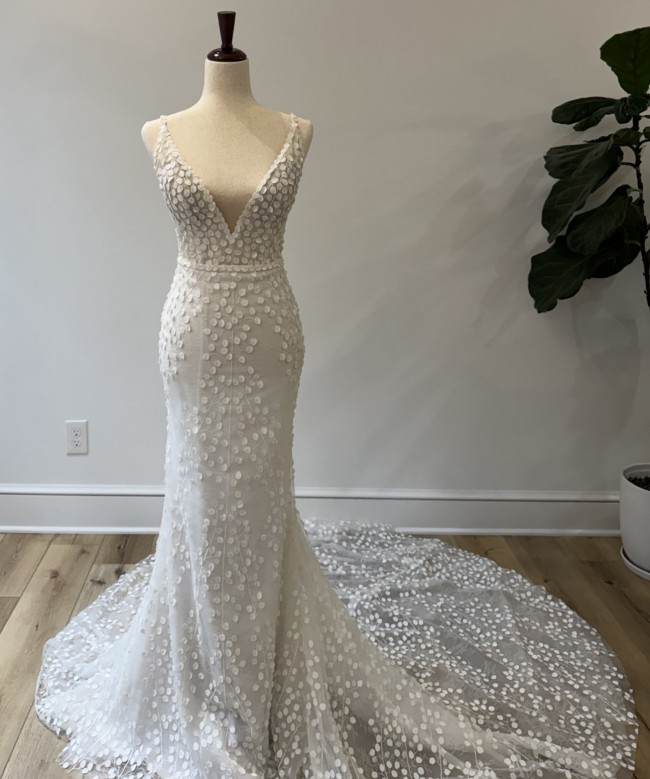 This Louie V2 dress from Made With Love truly is one of a kind. Its exquisite design combines a fit-and-flare silhouette with delicate 3D flowers and embroidery, creating a romantic and whimsical look that's hard to resist. The flattering V-neckline and enchanting backless design give the perfect blend of elegance and allure.