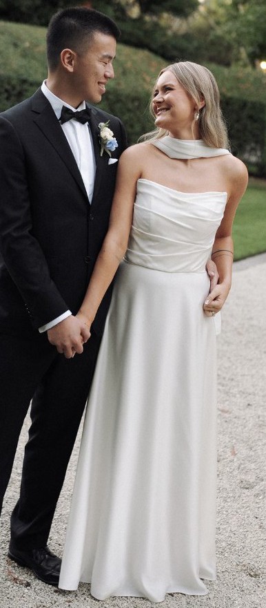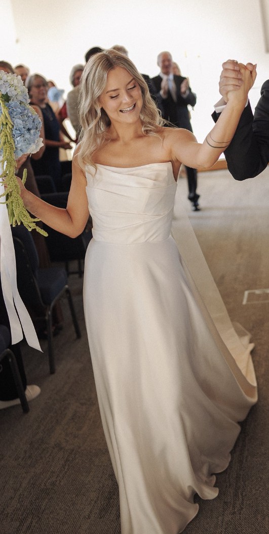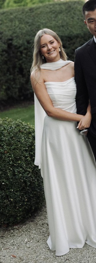 Selling my beautiful wedding dress! Bought late 2024, worn once and professionally cleaned, so it is in perfect condition! The silk fabric makes it so beautiful and it looks almost like water when moving, one of the most beautiful dress's I found at a great price when looking for one.
