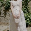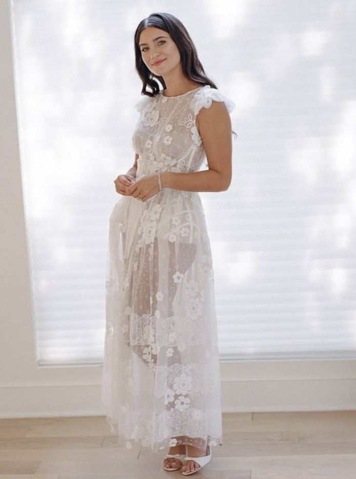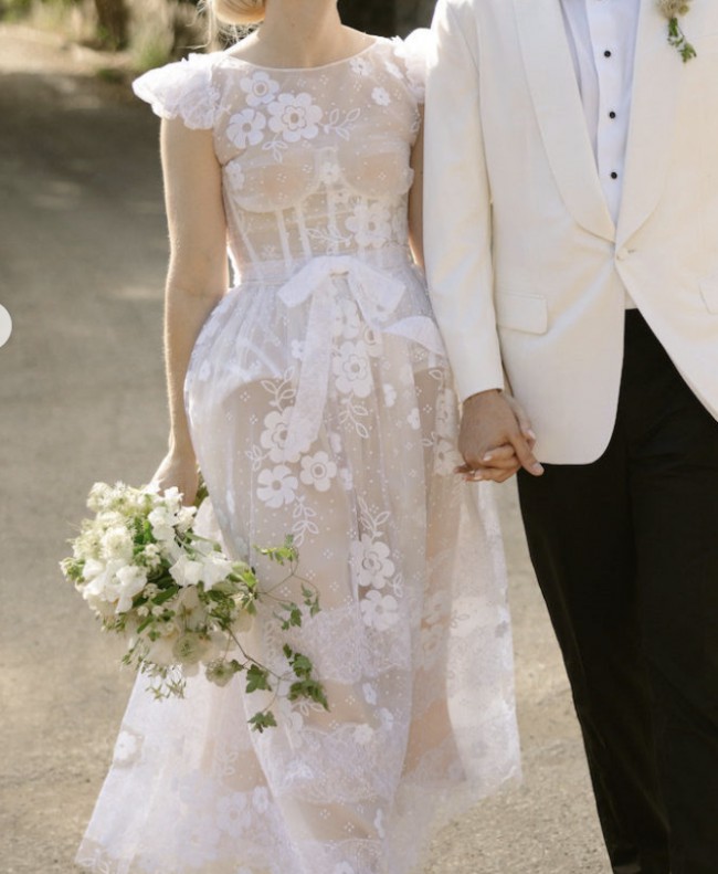 Flocked Floral Organza Cocktail Dress with Chantilly Lace Trim