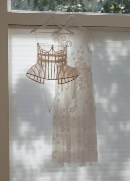 A sheer dress and a Bustier (which creates the flared hip look, open to selling the pieces separately)