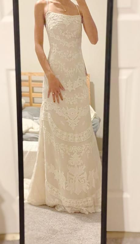 Size 6. Approximate measurements are: Bust 36", Waist 28", Hips 38.5".