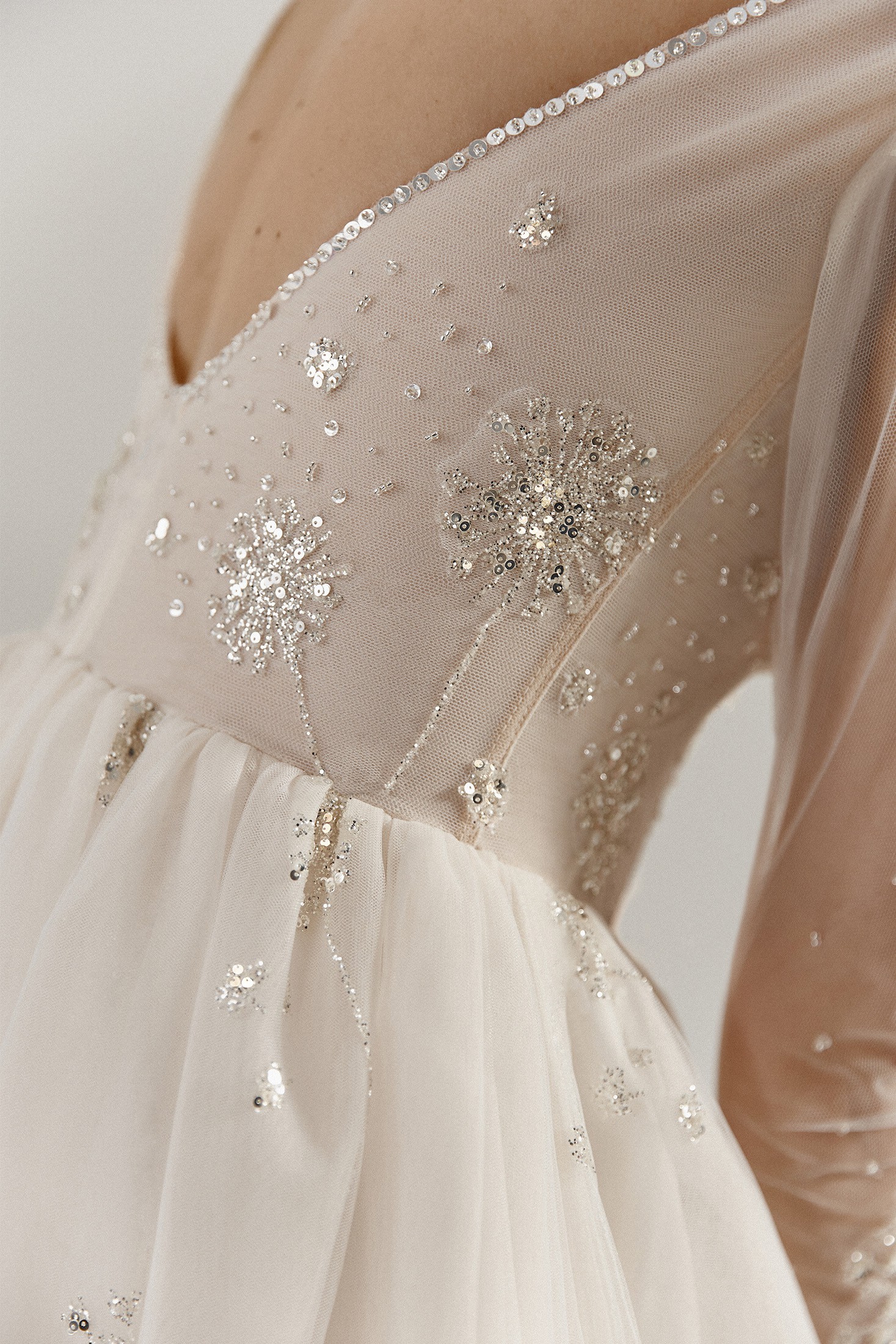 The intricate detailing is breathtaking; the cascading 3D flowers, shimmering beads, and subtle crystals create a stunning visual effect that sparkles in every light. As I walked down the aisle, the beautiful embroidery and sequins danced around me, capturing the attention of all our guests.
