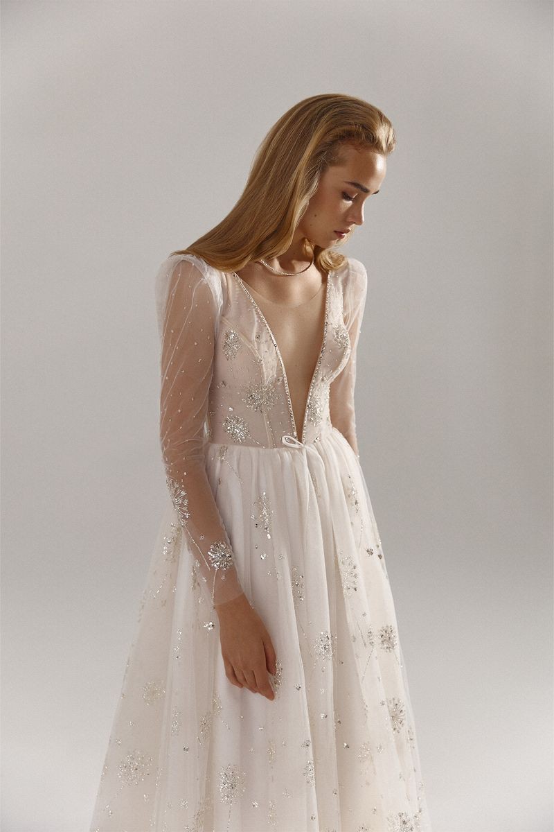 This Harmoni dress by Ria Tener is the embodiment of elegance and romance, and it made my wedding day truly magical. With its enchanting A-line silhouette and delicate V-neckline, I felt like a modern fairy tale princess. The long sleeves add a touch of sophistication, making it perfect for both daytime and evening ceremonies.