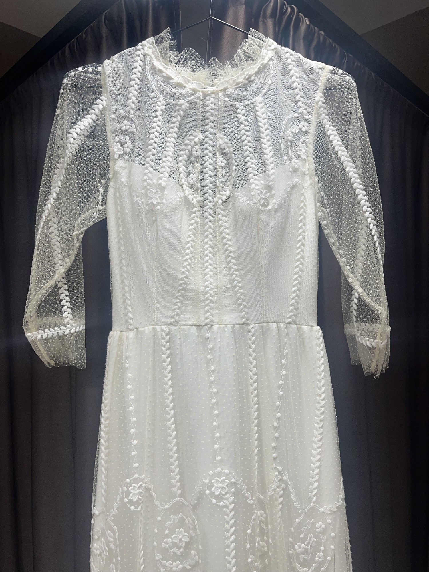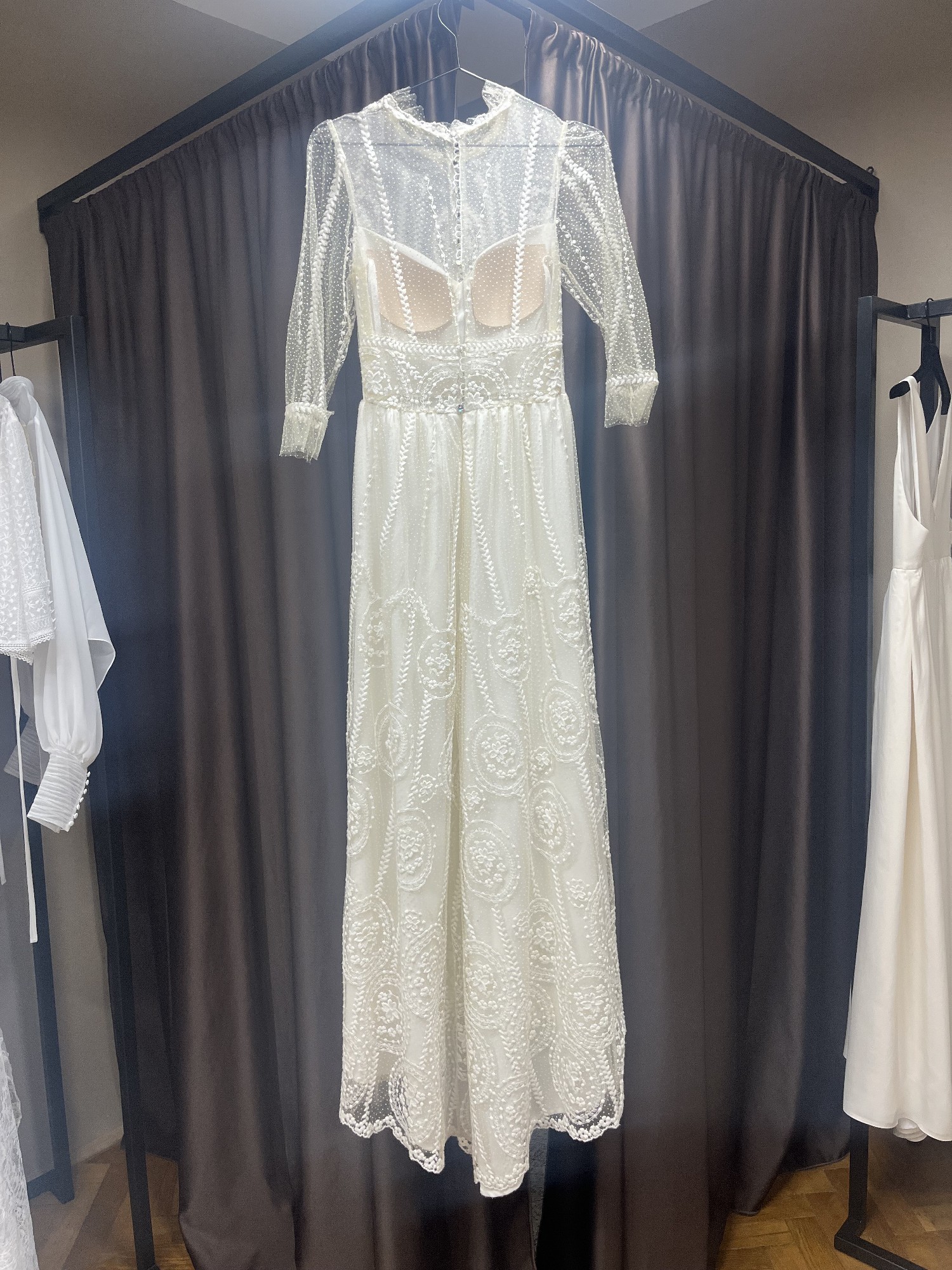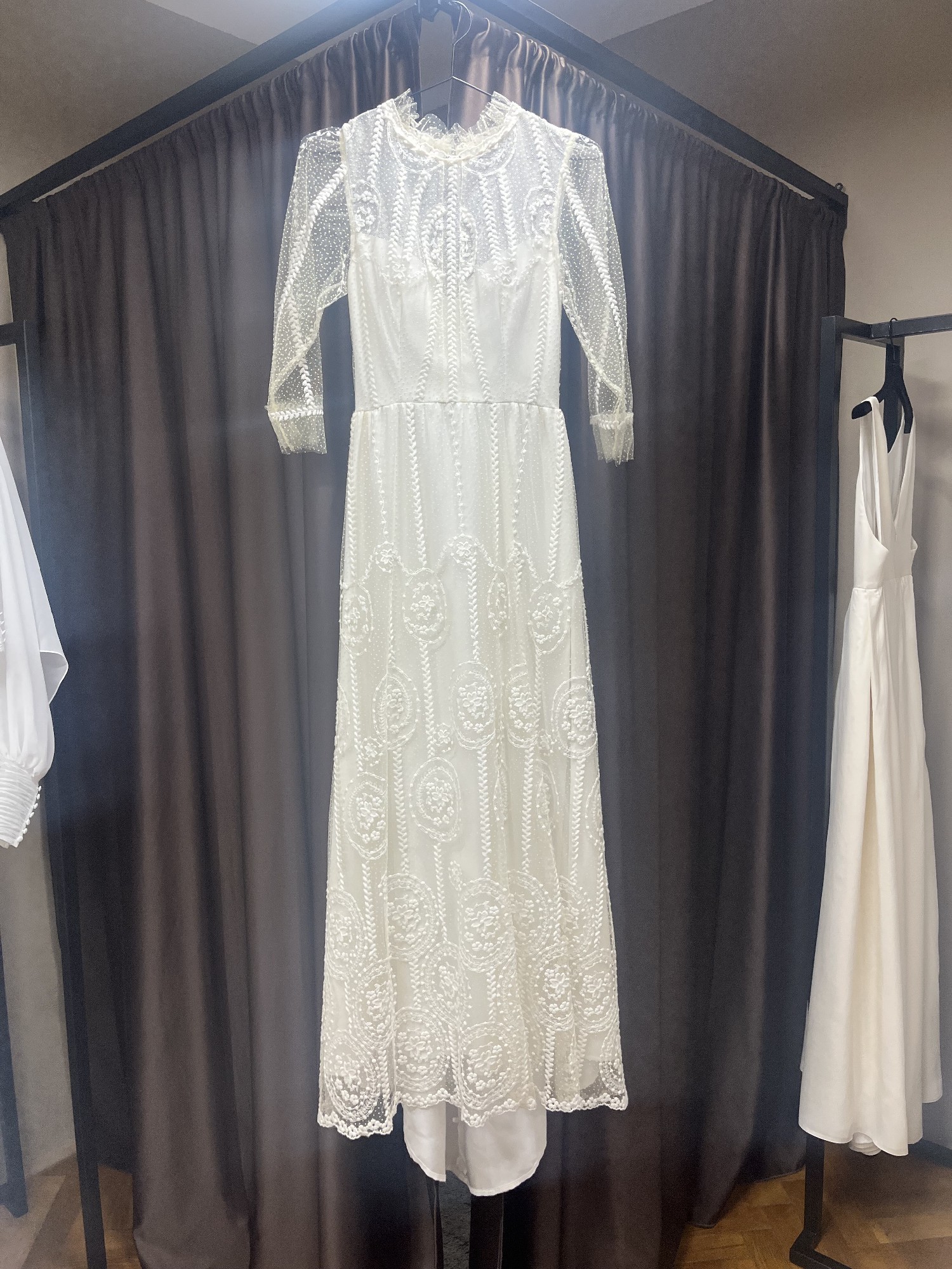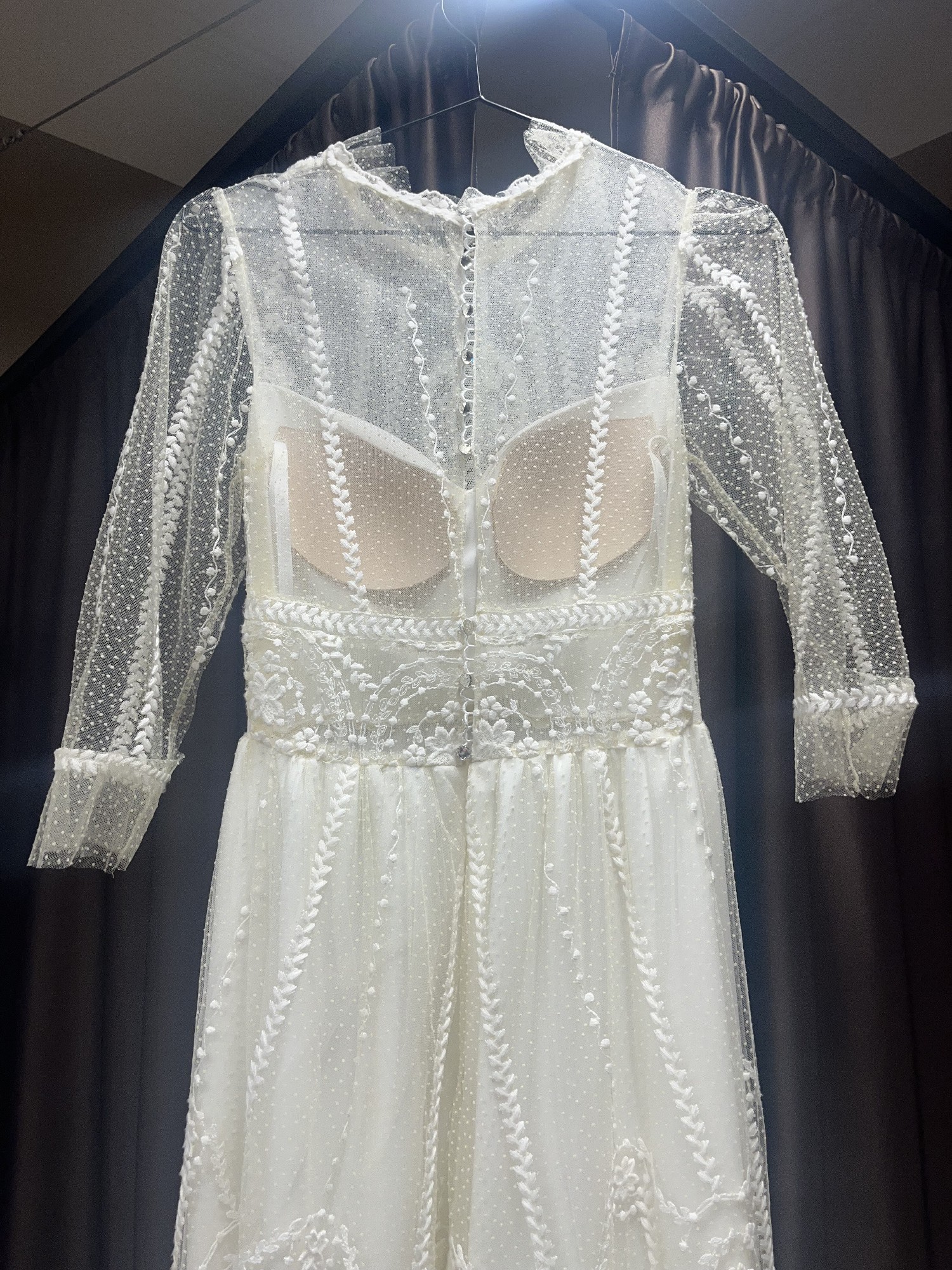 The high neck adds a touch of traditional charm while the sheer back makes it modern and enchanting. Featuring delicate embroidery that dances across the fabric, this dress caught the light beautifully, ensuring that every moment was picture-perfect. I received endless compliments throughout the day, and it truly made me feel like the most beautiful version of myself.
