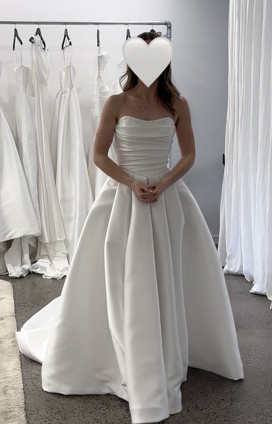 Custom Kenny & Harlow gown, made from gorgeous Meccano satin and worn for my wedding in October 2025. It features a boned sweetheart bodice, full pleated skirt, extra large train, zip closure with pearls down the back and invisible loop to hold up the train when required. I’m usually a size 6-8, 167cm tall (I wore 9cm heels) and the dress was altered to fit me perfectly. Worn for just 5 hours, it has been professionally cleaned and is in excellent condition, with only minor signs of wear.