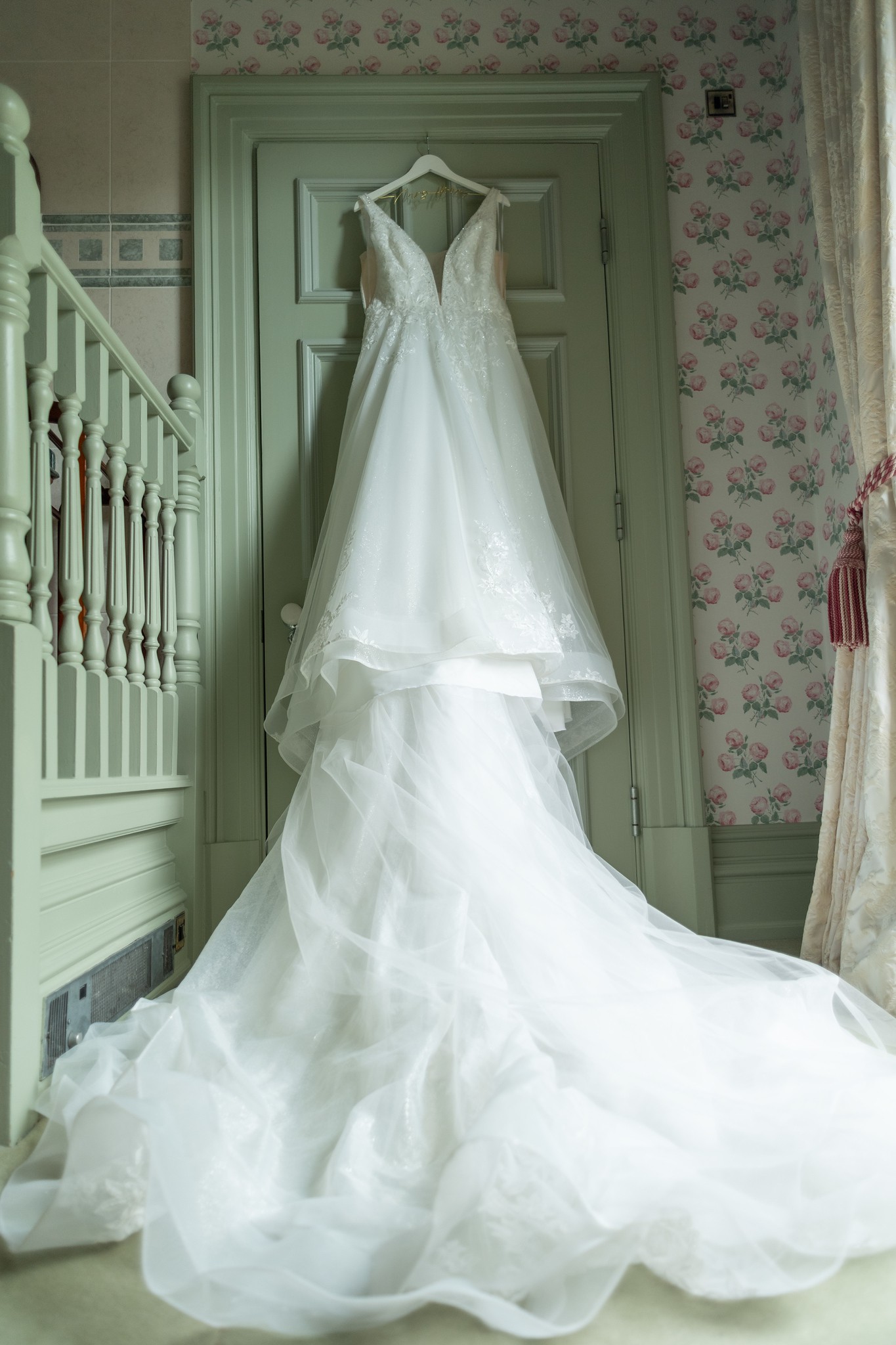 The V-neckline adds a touch of sophistication, while the low back adds just the right hint of allure. Delicate straps provide support and enhance the overall elegance of the gown. I truly adored how the intricately incorporated crystals, exquisite embroidery, and shimmering sequins danced under the light, creating a soft, radiant glow that captivated everyone around me.