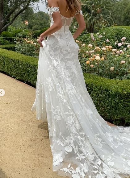 It has exquisite lace embroidery details, and a strapless mid-back design allows for comfortable movement while still feeling secure.