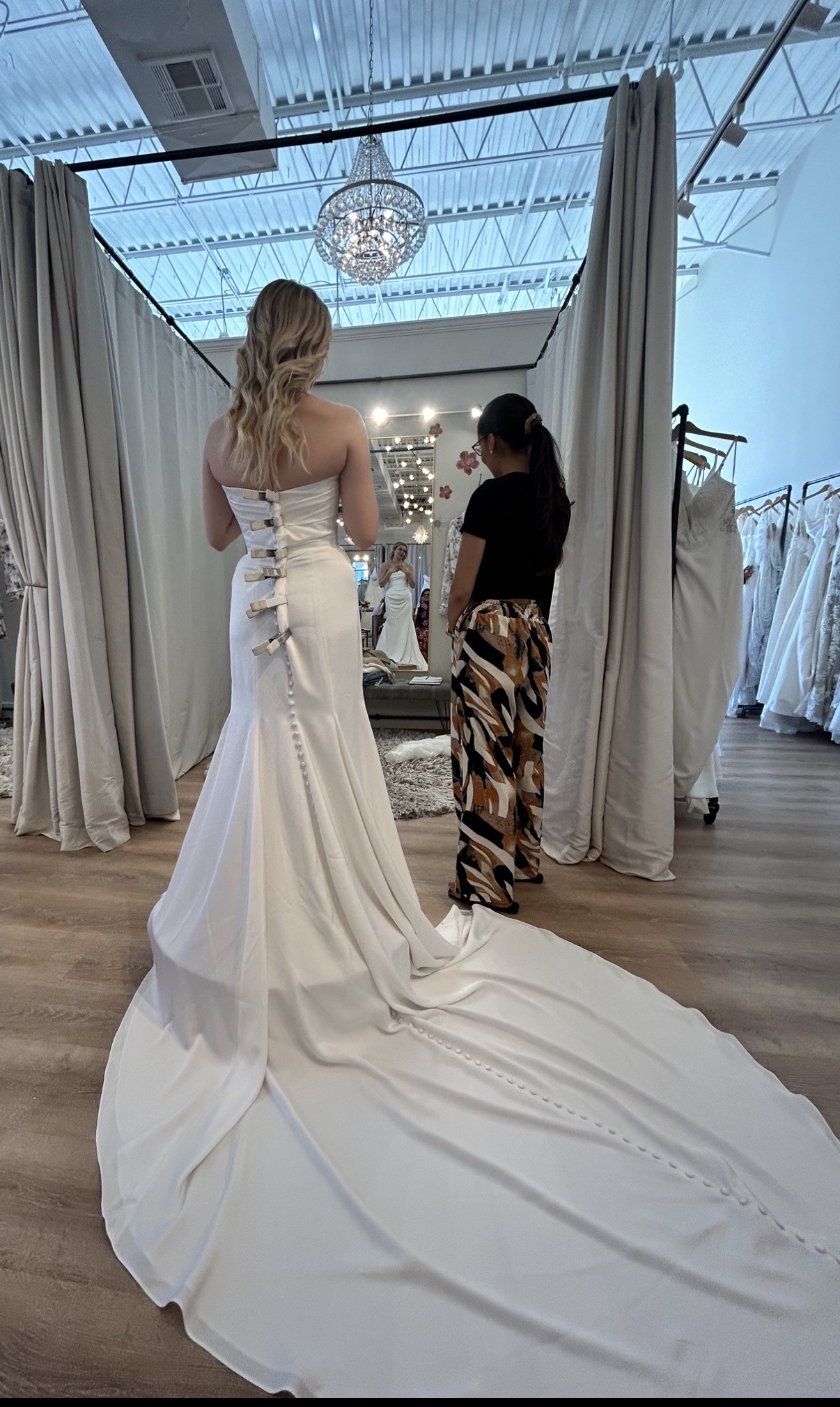 This dress is perfect for a bride who wants a versatile, elegant gown that makes a statement. Unfortunately I had to order a new dress. I would hate to see this one hide away in my closet. It’s Ready for its new bride!
