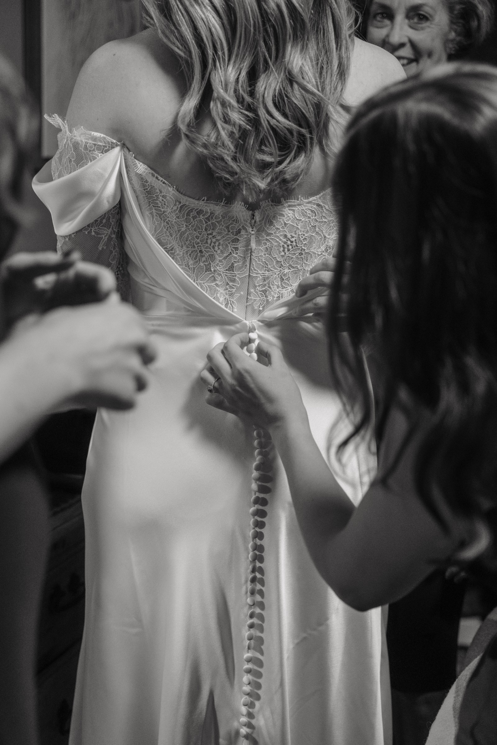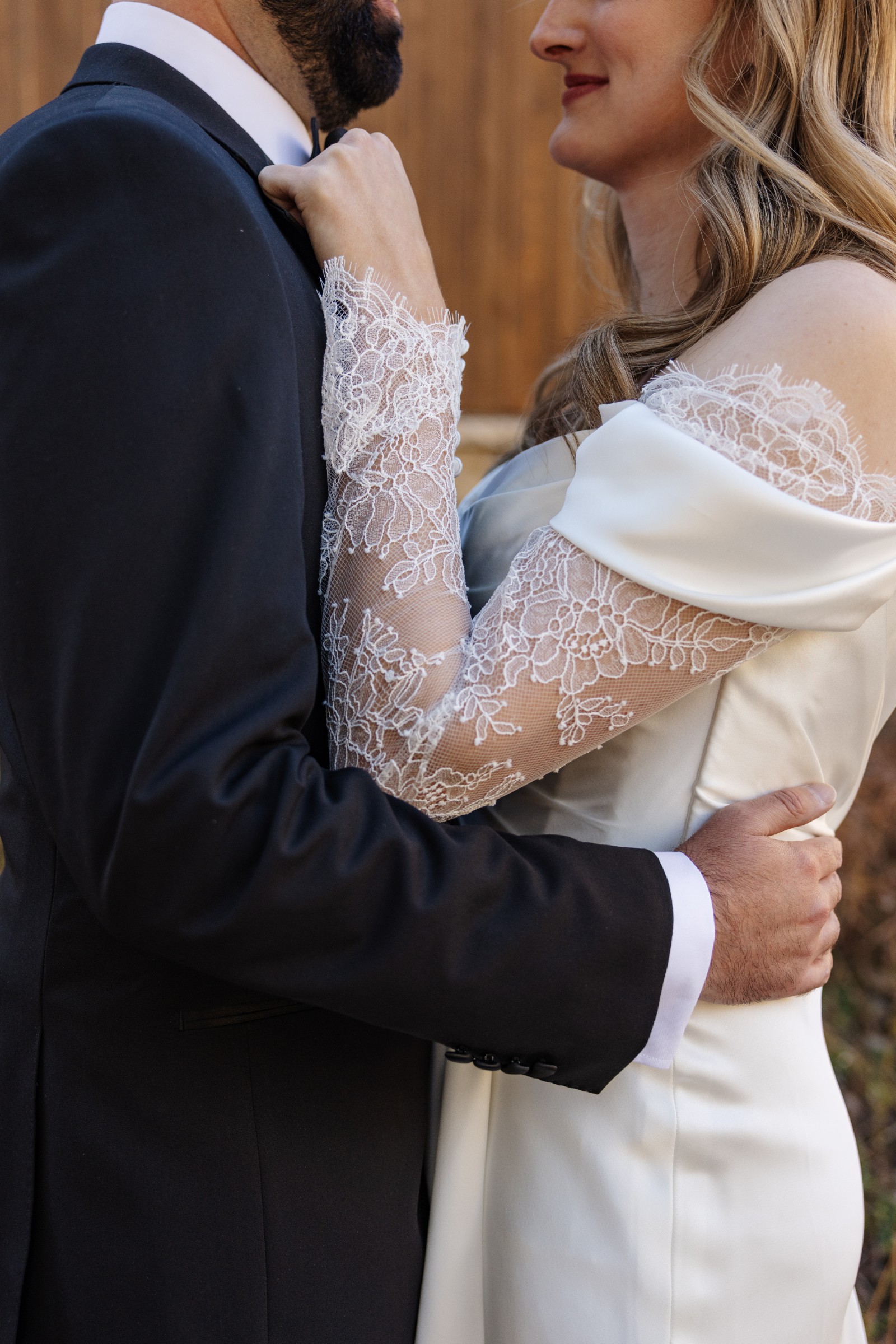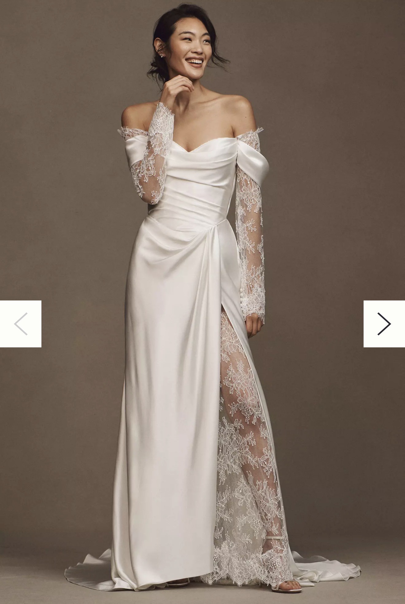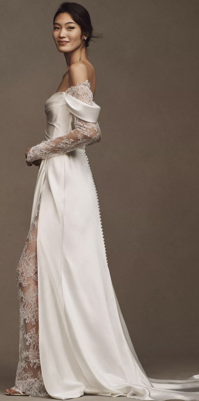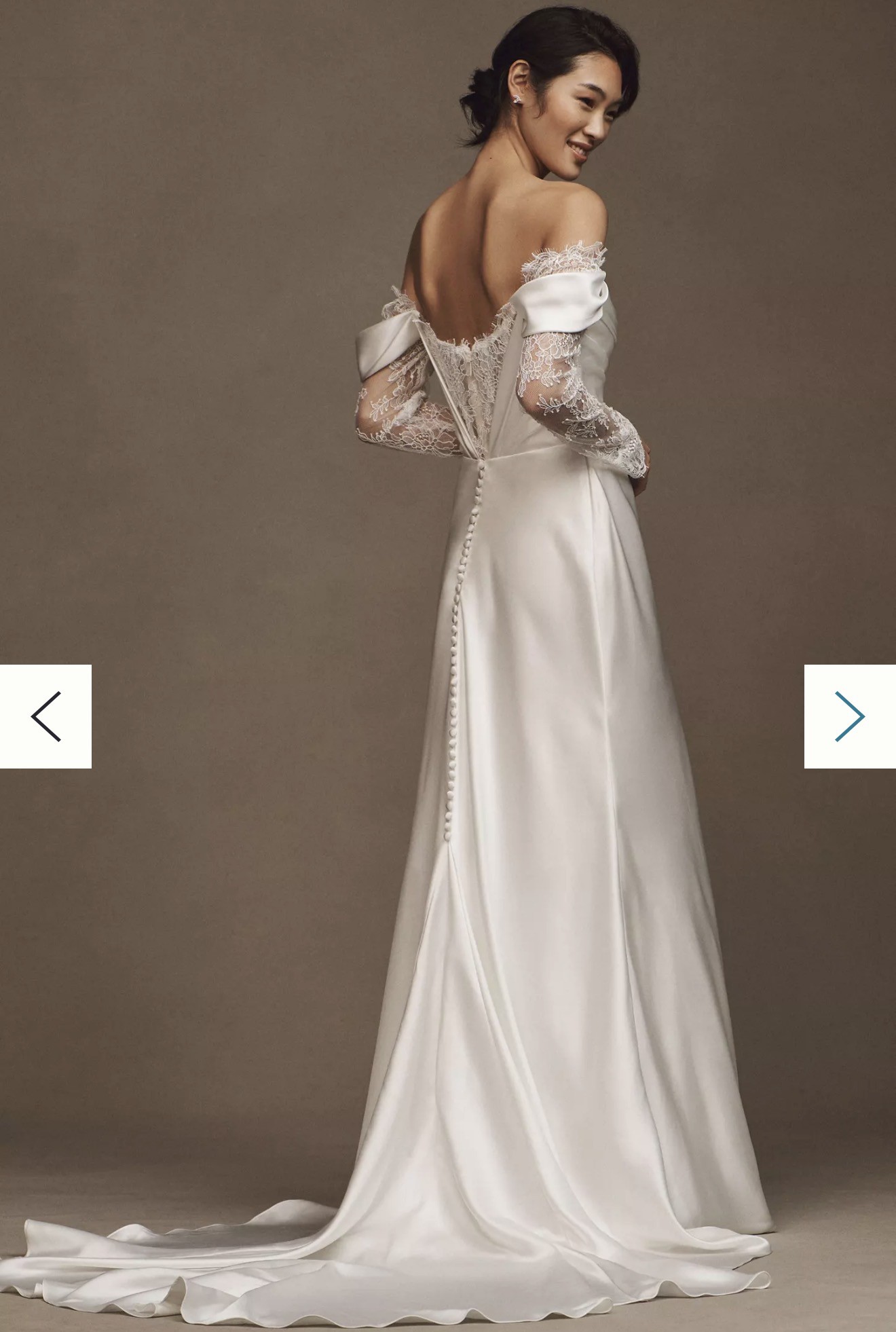 Watters, Harlow Off-The-Shoulder Satin & Lace Wedding Gown