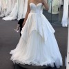 The dress has been worn and is in good condition, with some blemishes from wear. It has not been altered, so it can be tailored to your own fit. This is a great option for a bride looking for a designer gown at a lower price and who plans to have it cleaned or lightly refreshed.