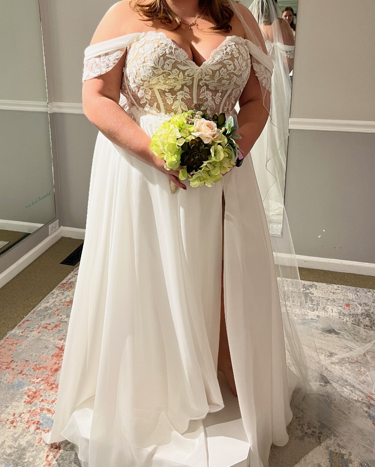 The dress has only been tried on and is in excellent, like-new condition.