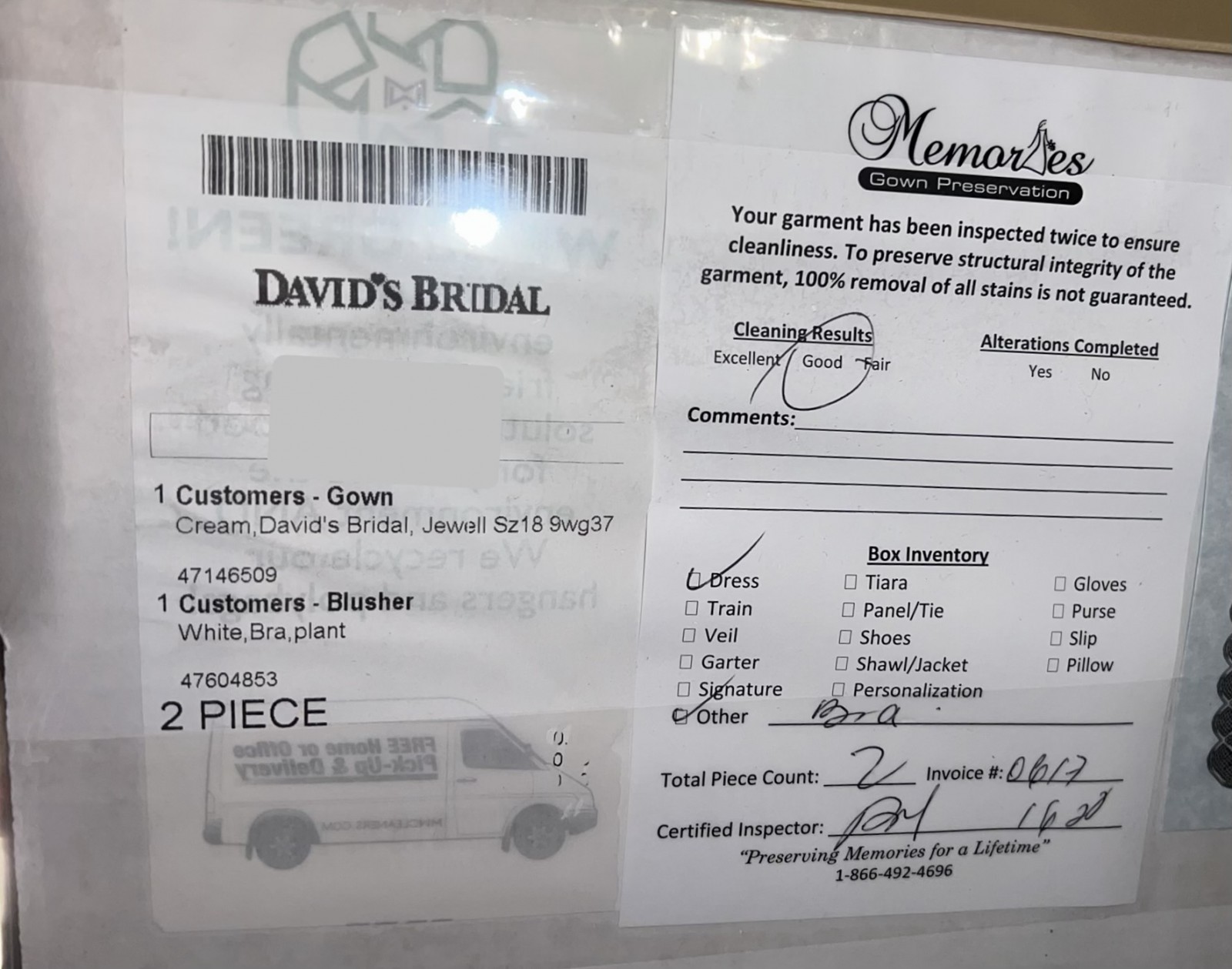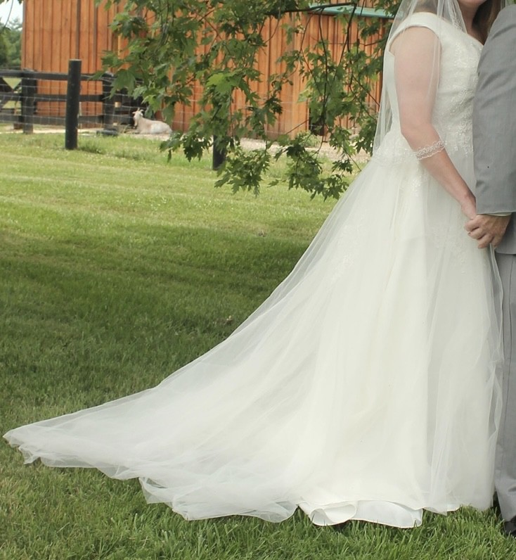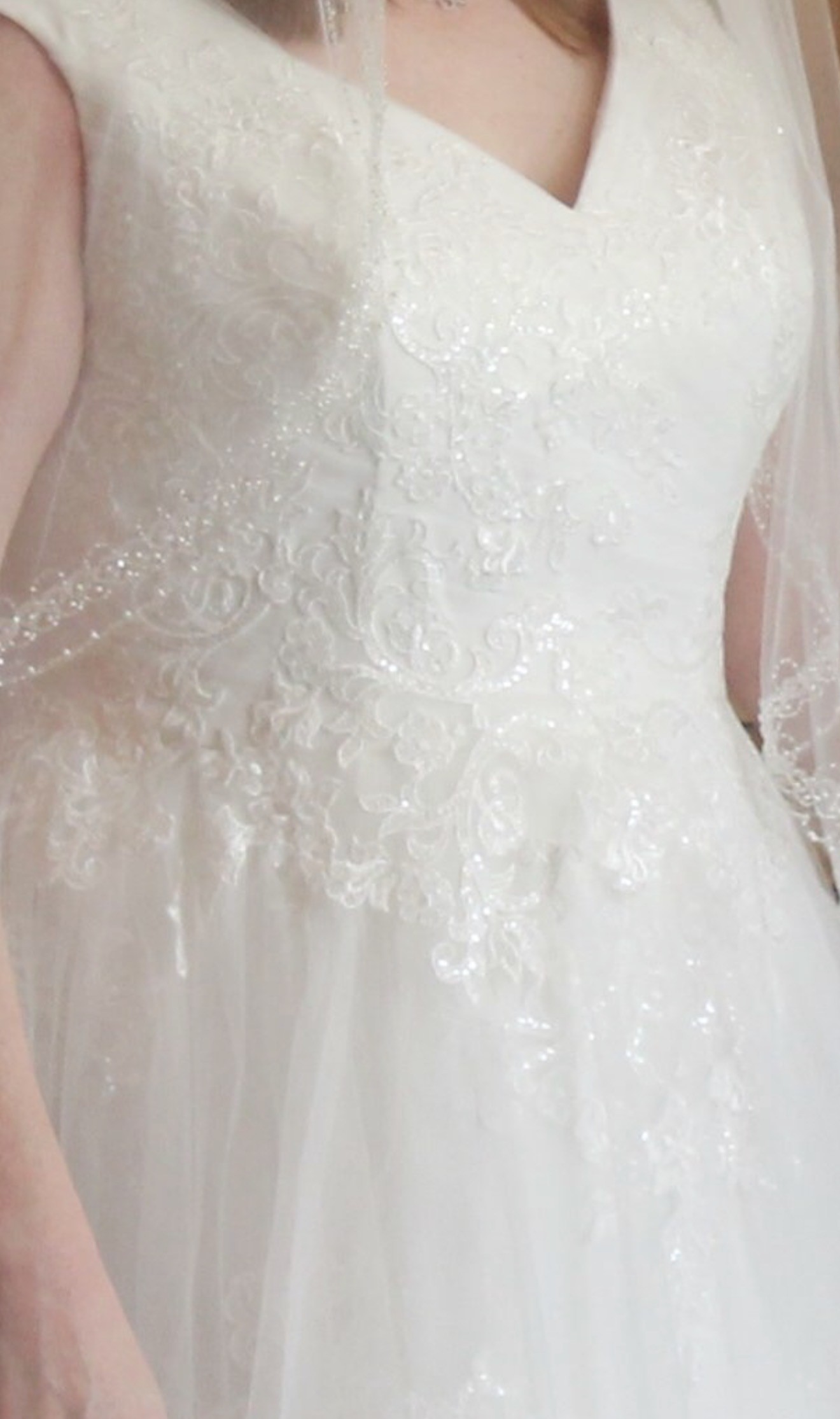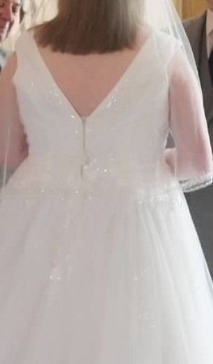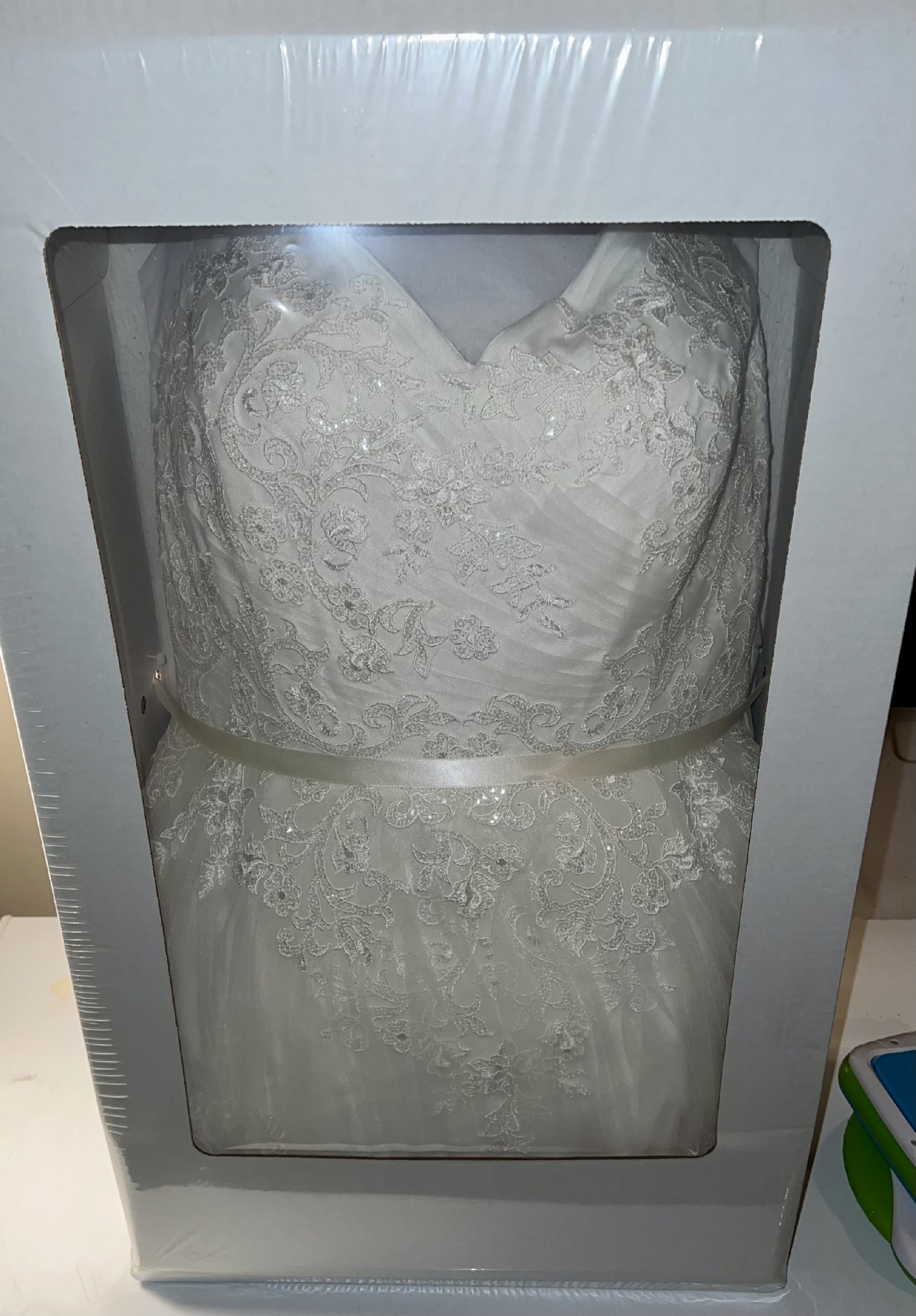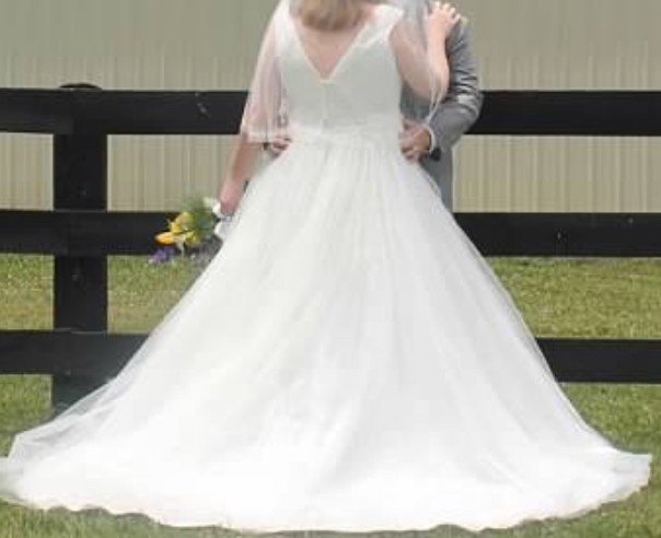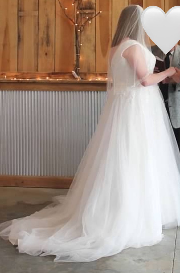 Beautiful ballgown style wedding dress. Minor alteration in the bust. Length and waist not altered. Includes bra. In preservation box. Only worn for a couple of hours.