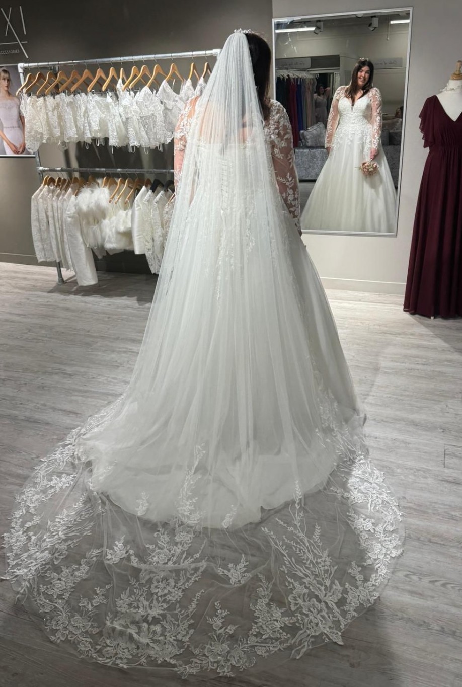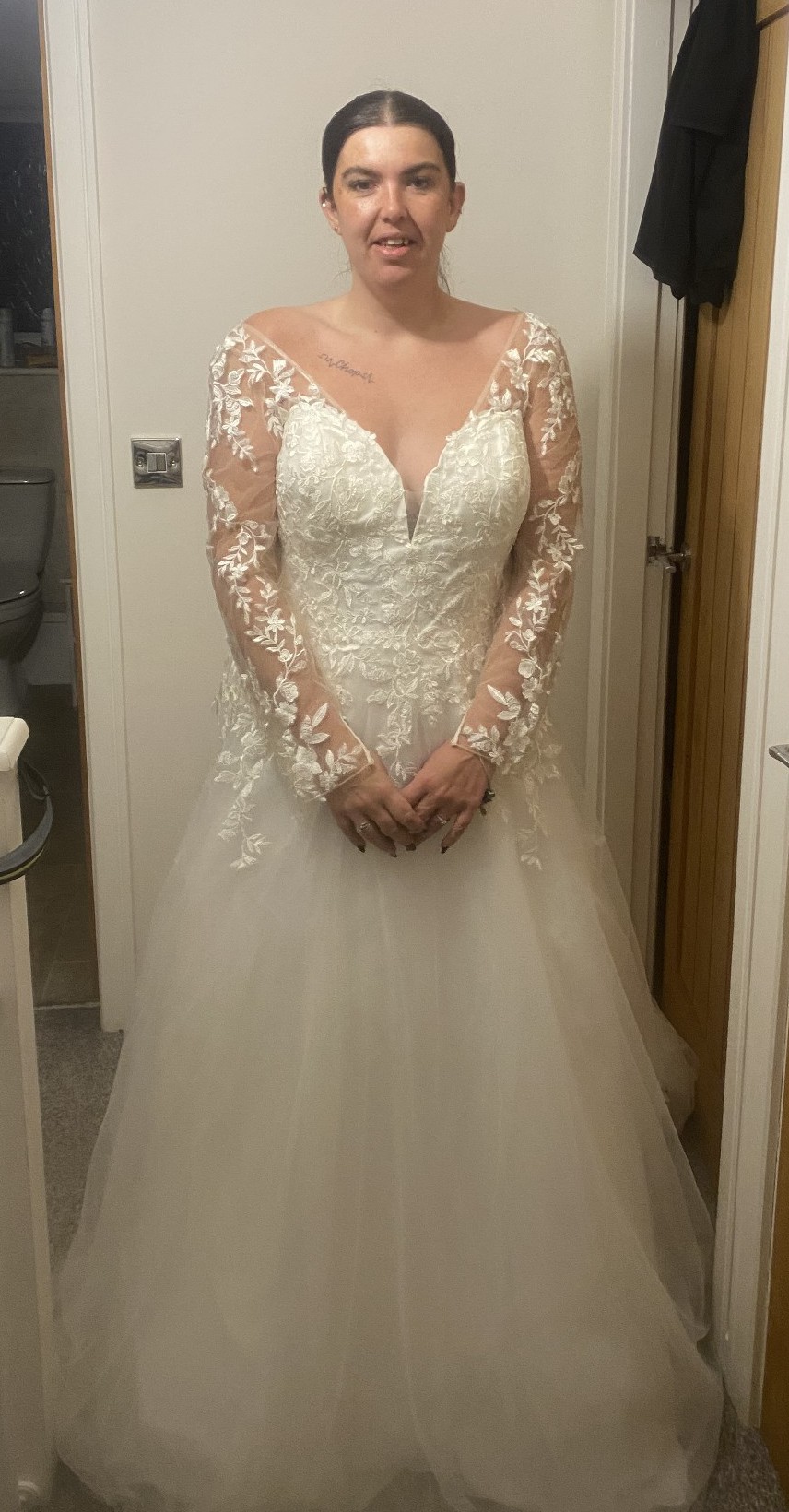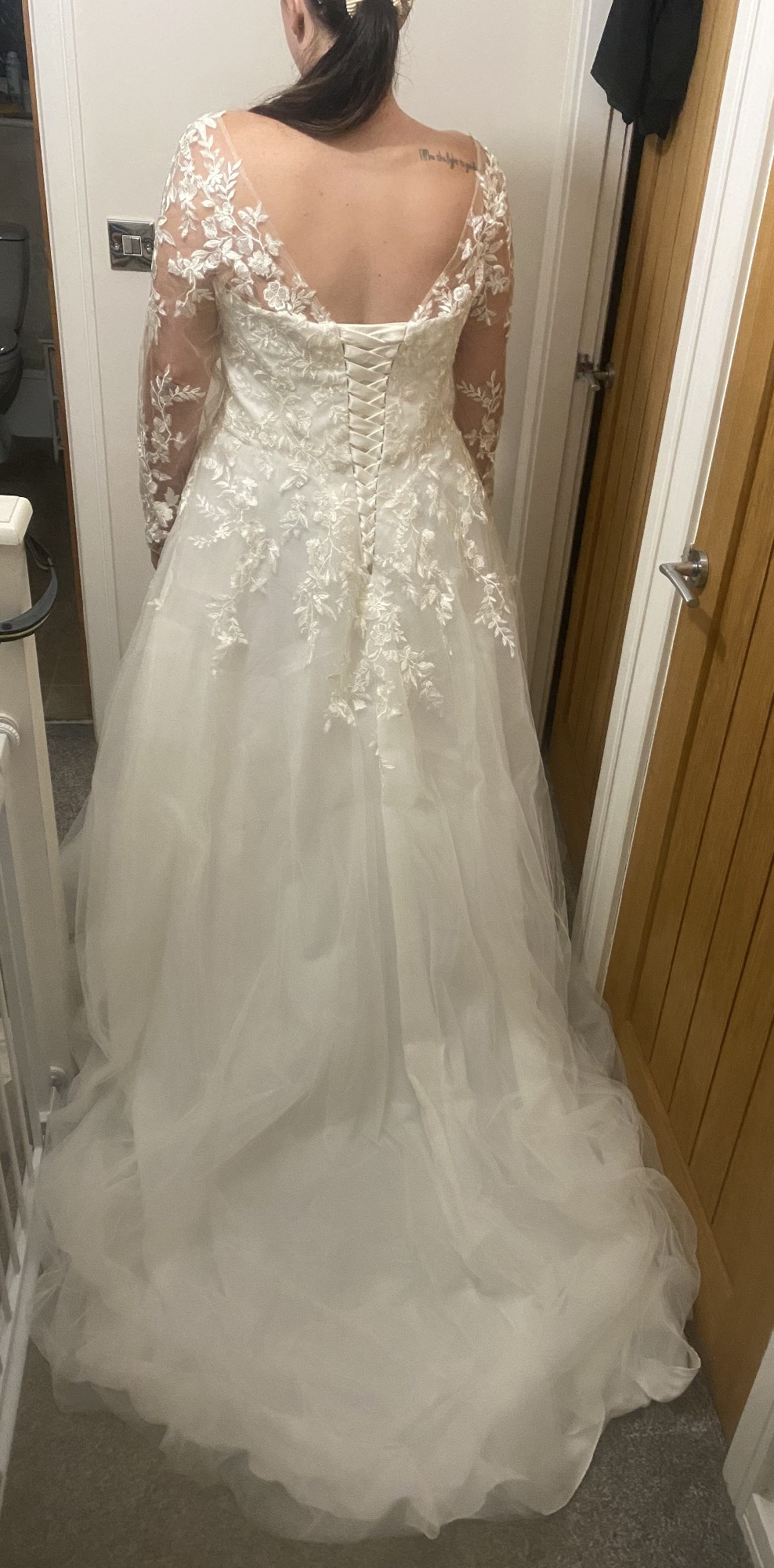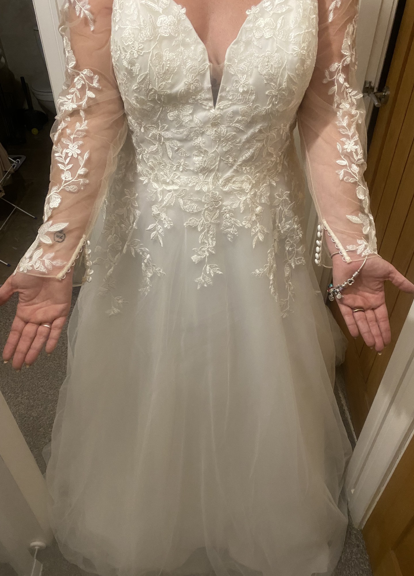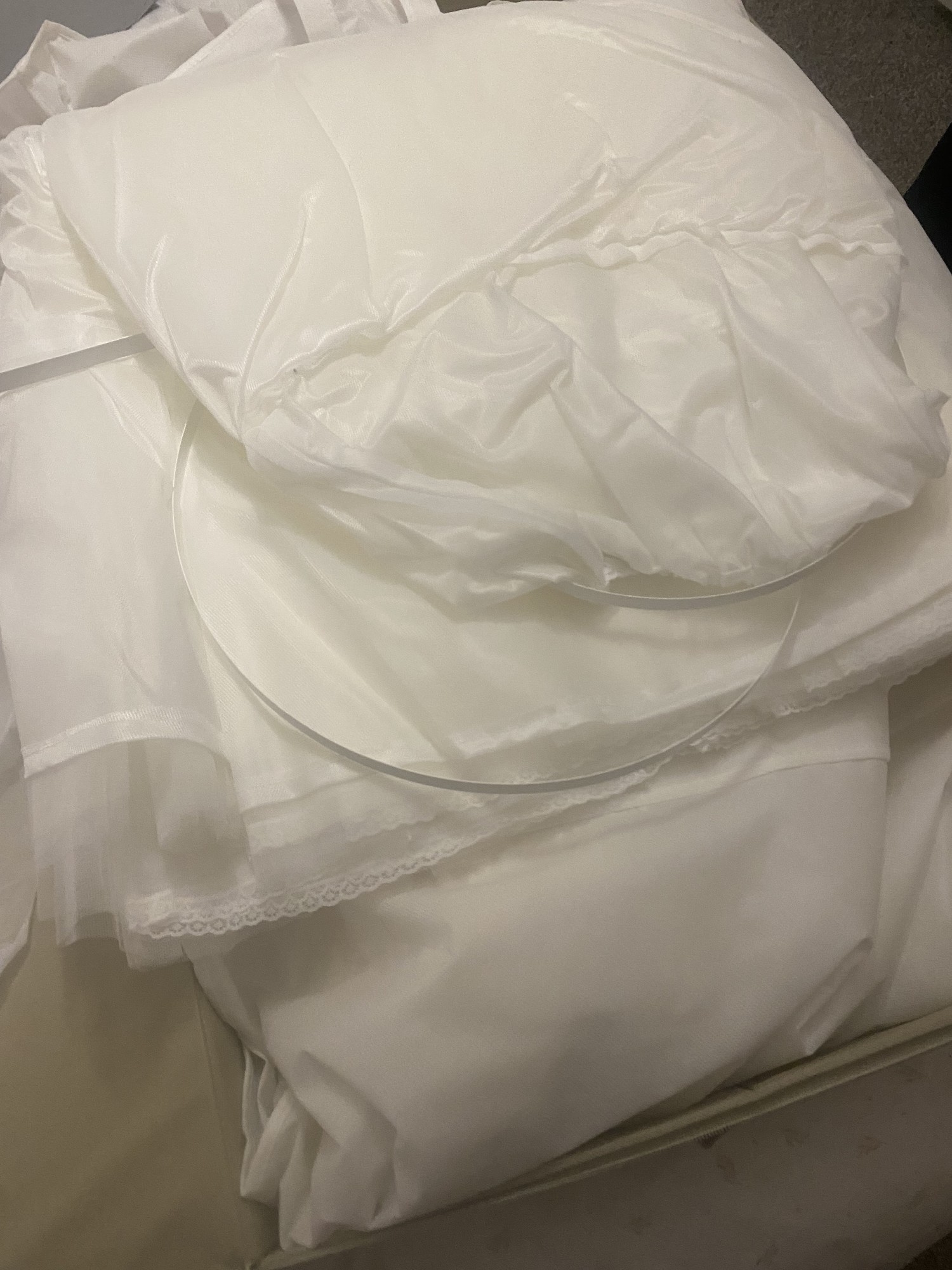 Selling this dress as I have lost 7stone and want a different style. This dress comes with an under hoop skirt the detail is fabulous and not heavy to wear. I bought the hoop and under skirt as an additional to the dress. Veil is NOT included