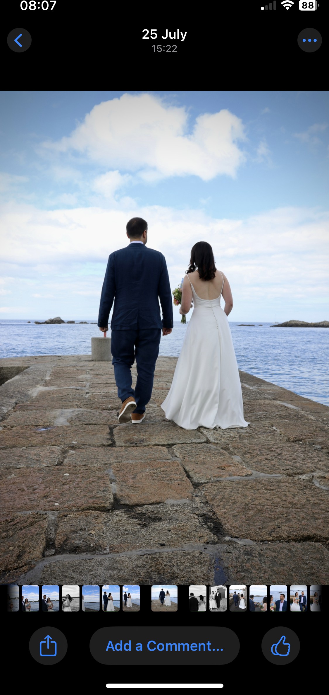 White dress in immaculate condition. Tea length at the front and floor length at the back. Includes underskirt