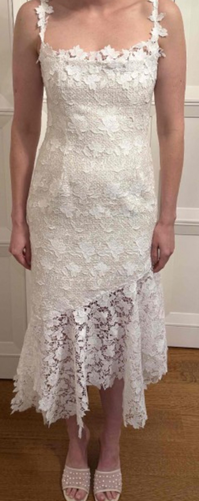 Asymmetric guipure lace-trimmed appliquéd tweed midi dress 6