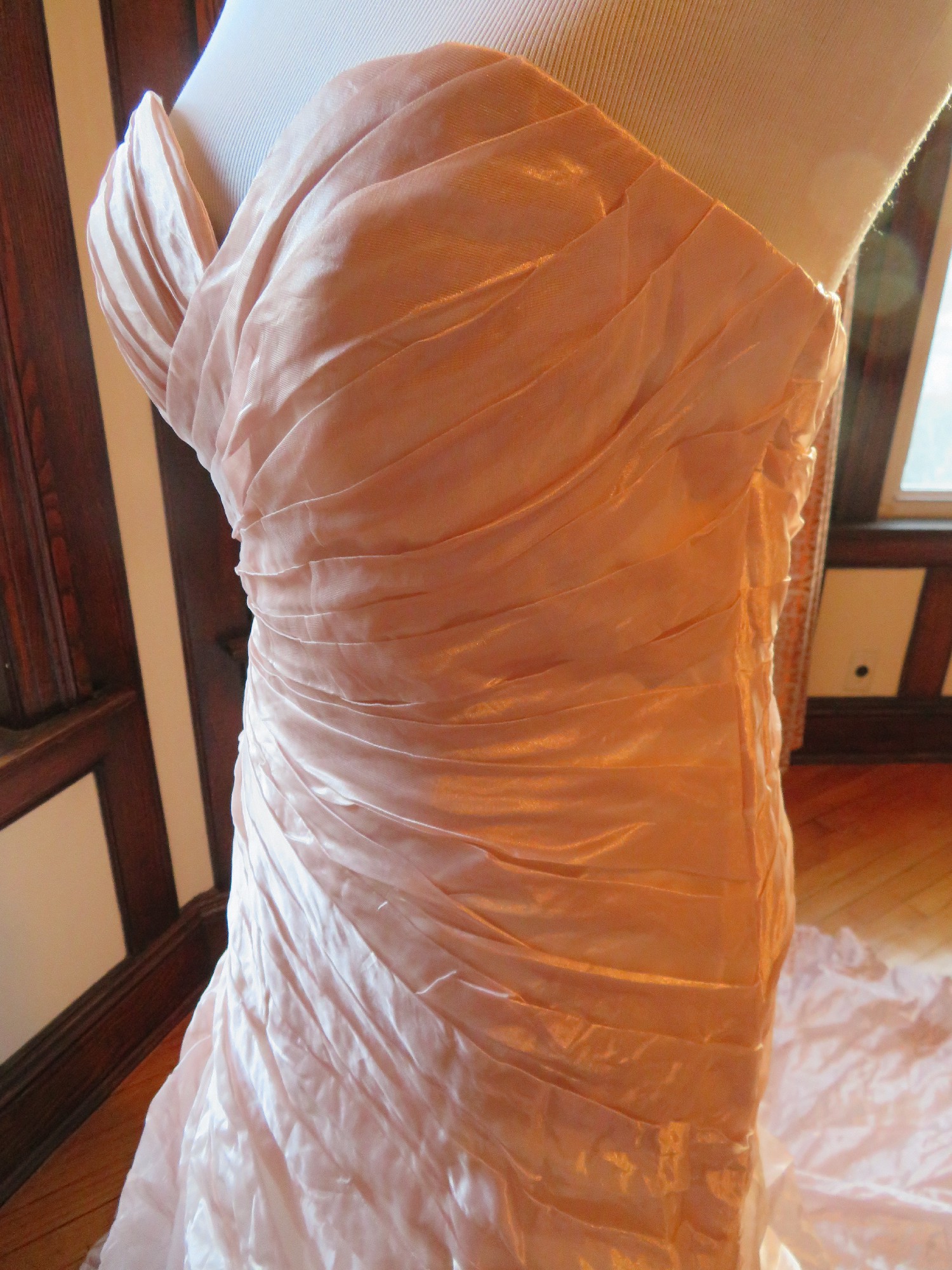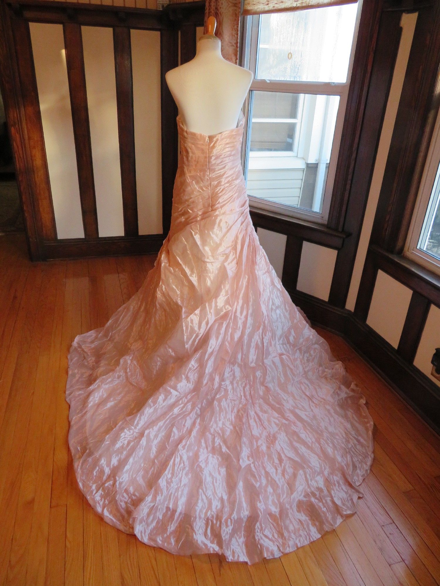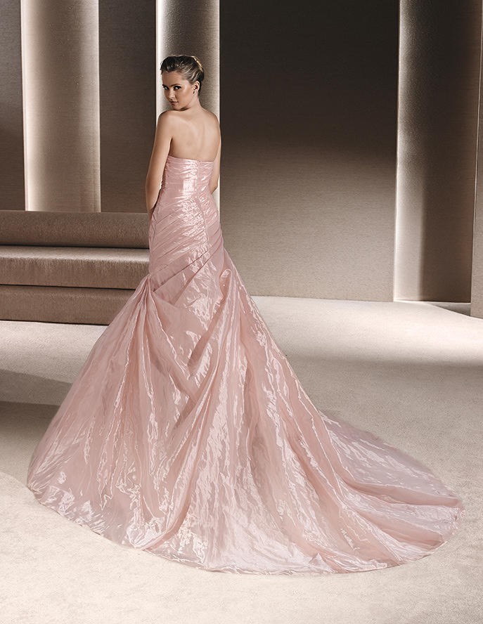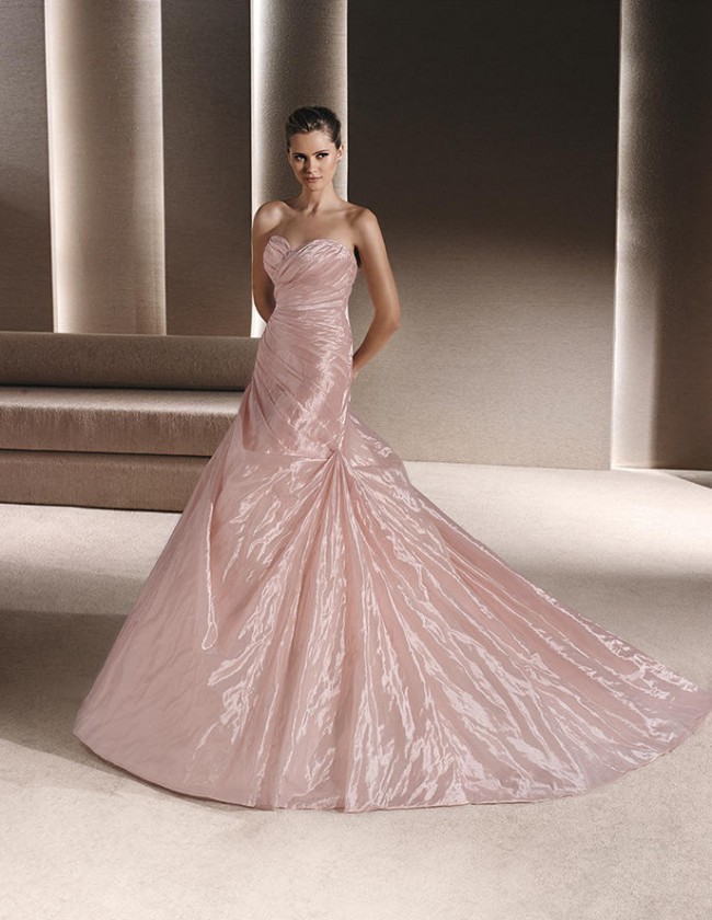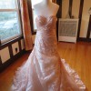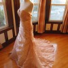 This is an Authentic LA SPOSA by PRONOVIAS Bridal Wedding Dress Gown. The name of the dress is ROSAURA. It has a gorgeous fit and flare style with a fabulous long train. The bodice also has boning to build a perfect shape. This dress is brand new in great condition with the original label and tags. It was never worn.