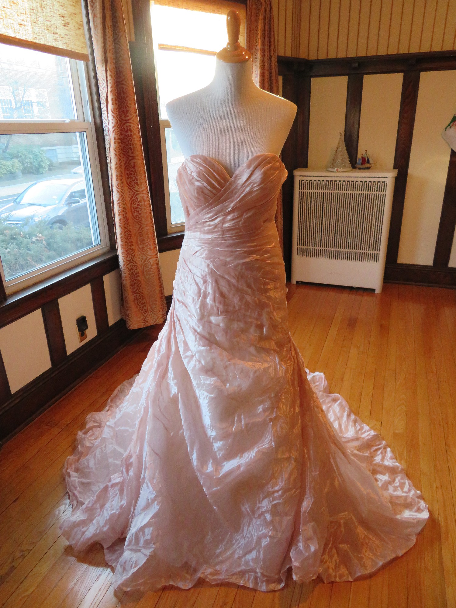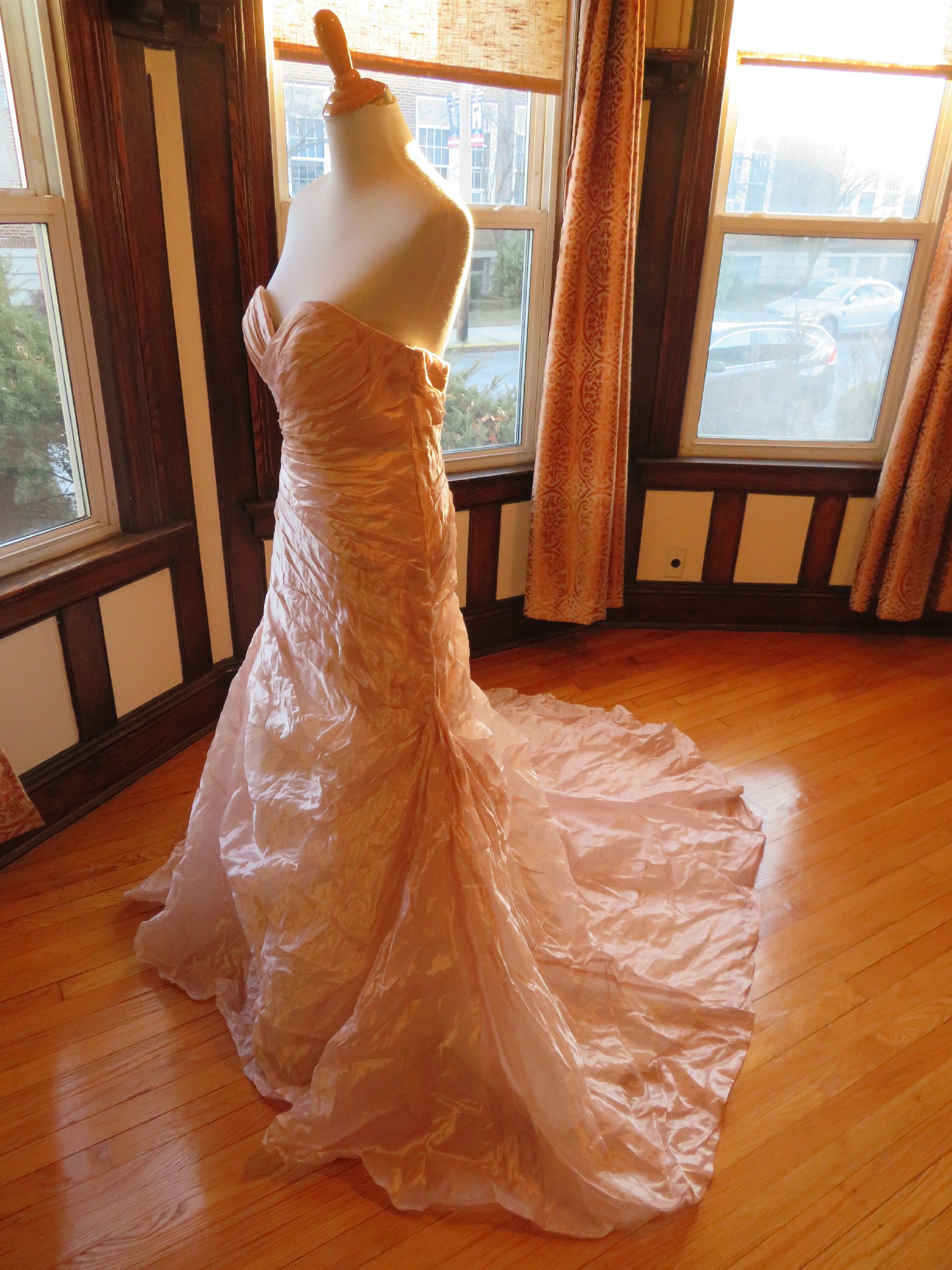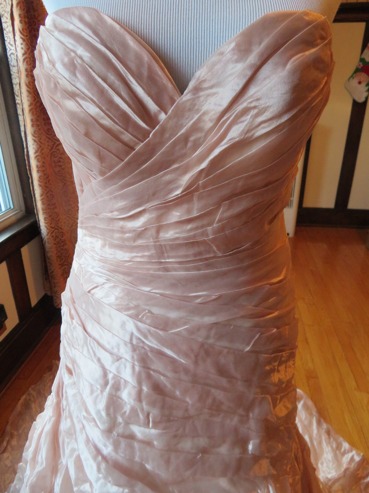 This is an Authentic LA SPOSA by PRONOVIAS Bridal Wedding Dress Gown. The name of the dress is ROSAURA. It has a gorgeous fit and flare style with a fabulous long train. The bodice also has boning to build a perfect shape. This dress is brand new in great condition with the original label and tags. It was never worn.