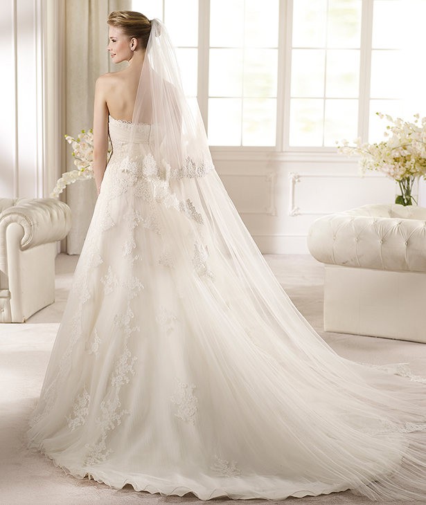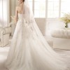 This is an Authentic SAN PATRICK by PRONOVIAS Bridal Wedding Dress Gown. The name of the dress is RIAZA. It has a gorgeous A line style with a fabulous long train. The entire gown is embellished with exquisite floral lace, and stunning crystals and sparkling beads/sequences under the bust. The bodice also has boning to build a perfect shape. The skirt has netting petticoat inside to support a full shape. This dress is brand new in great condition with the original label and tags. It was never worn.