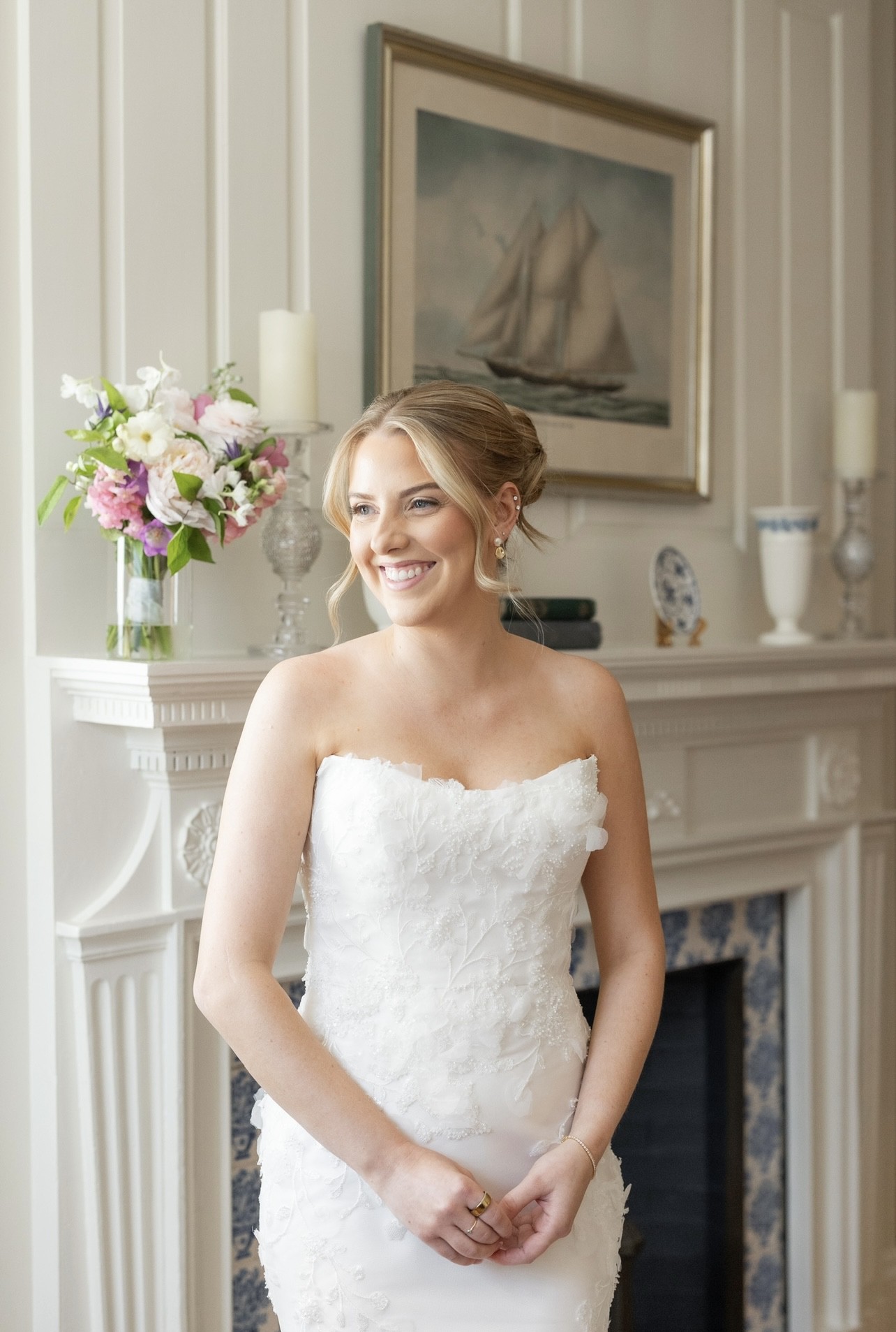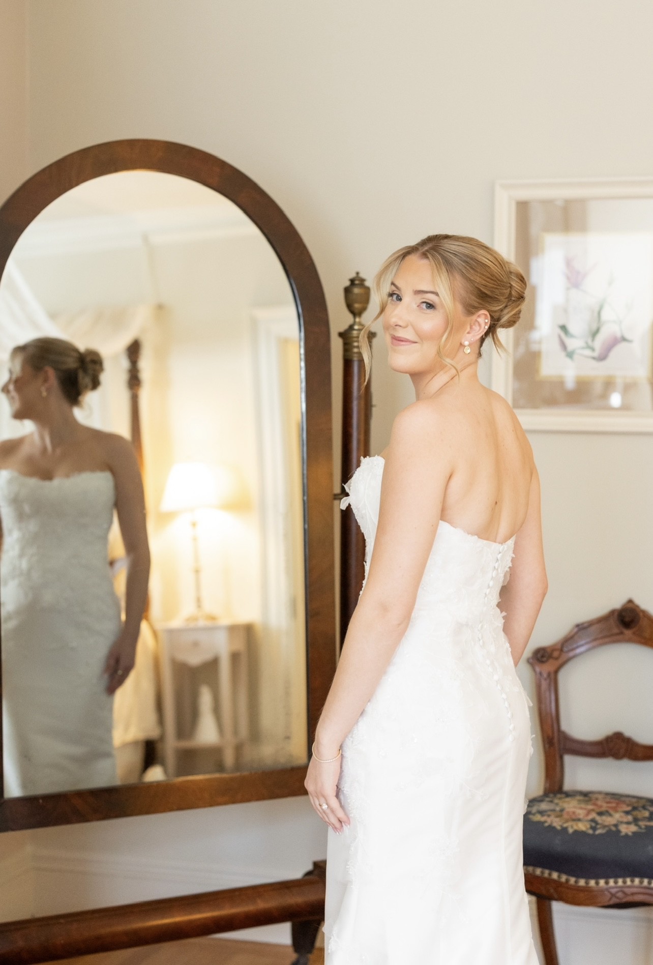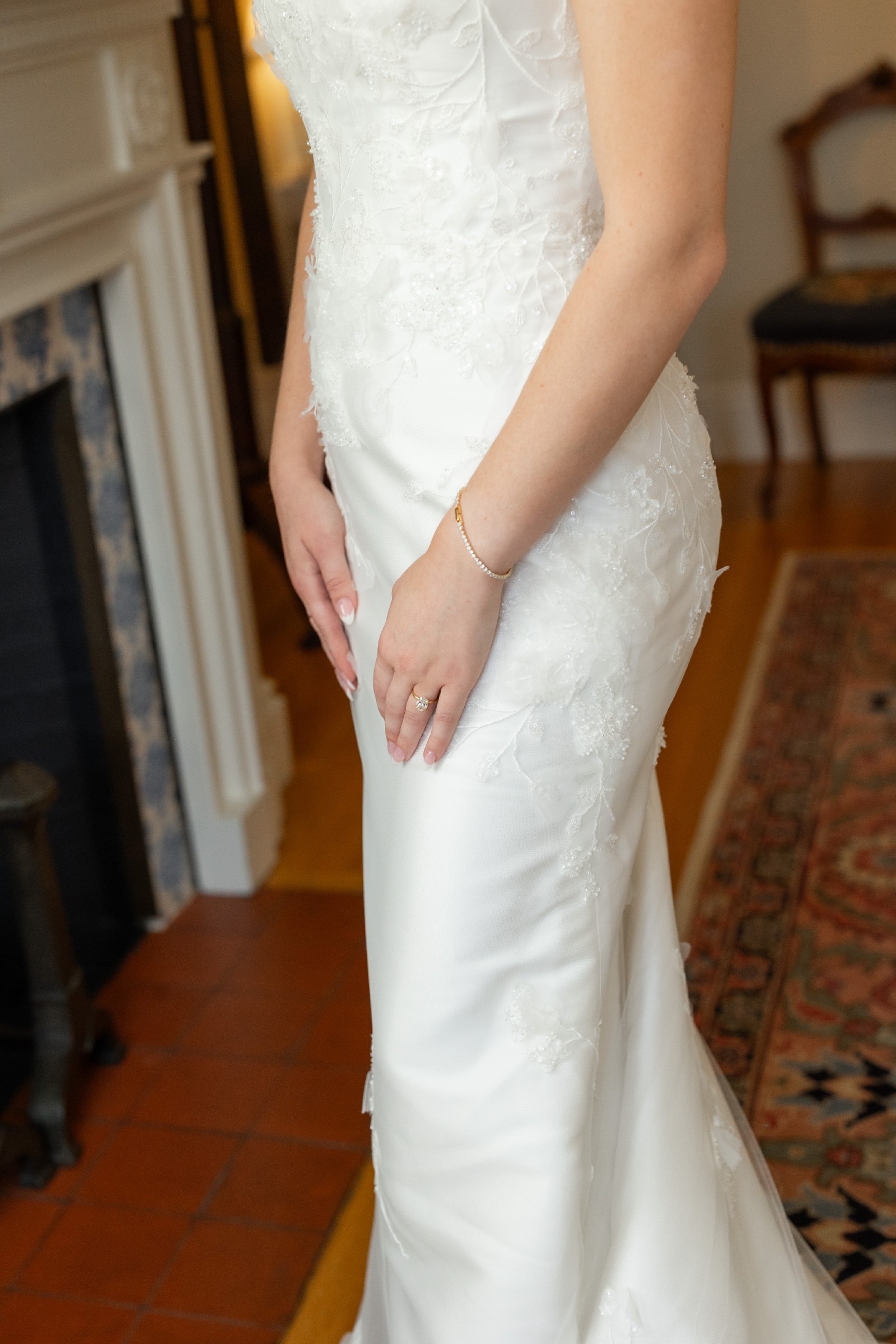 Beautiful Alison Webb Kendall dress worn once for my June 2025 wedding. Professionally dry cleaned and preserved. Minor alterations made- top of dress taken in around bust to lay flat against chest. True waist for dress remains unaltered. I am 5’4” and wore 3 inch heels. Please message with any questions!