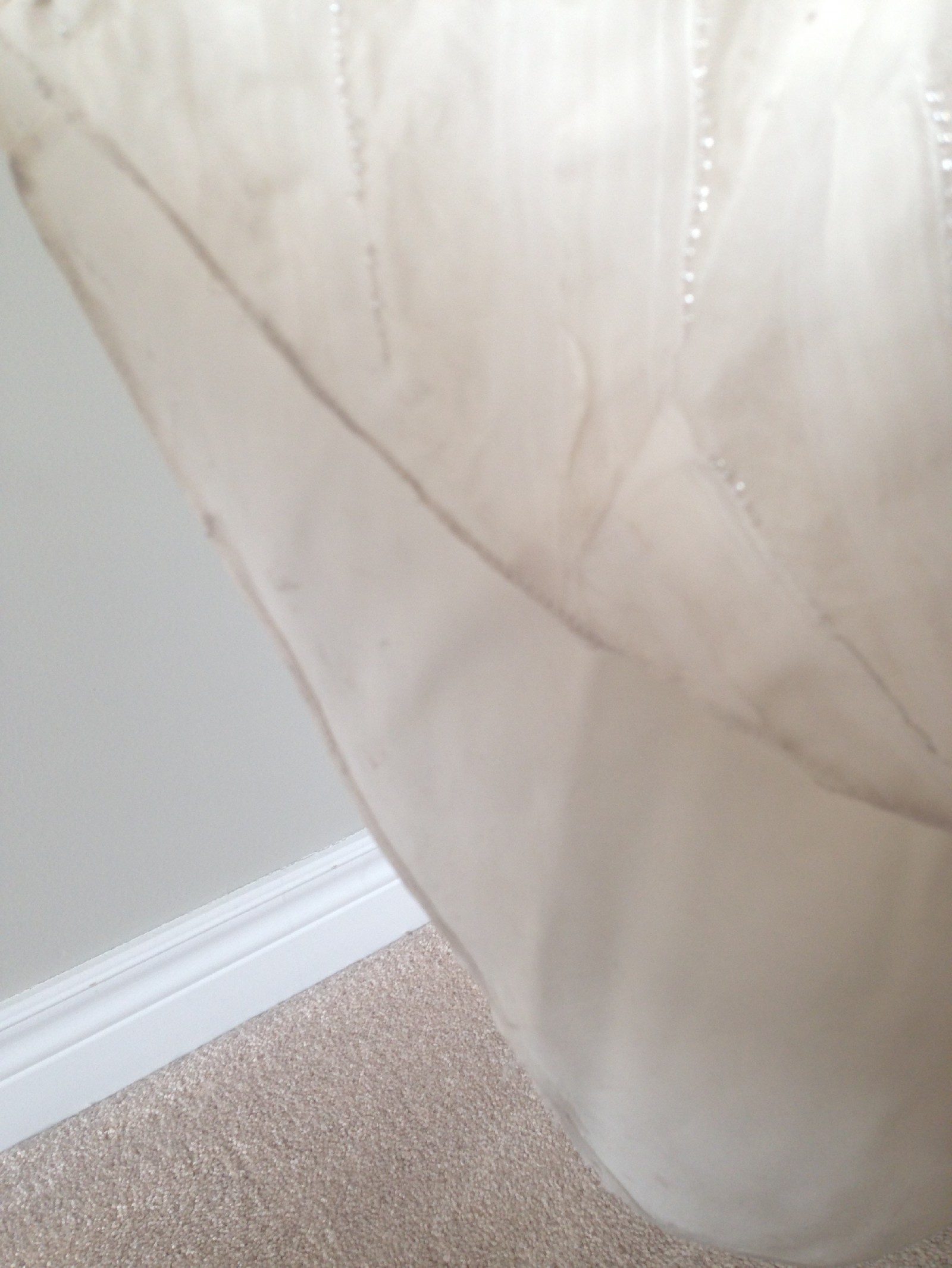 - Light staining at hem