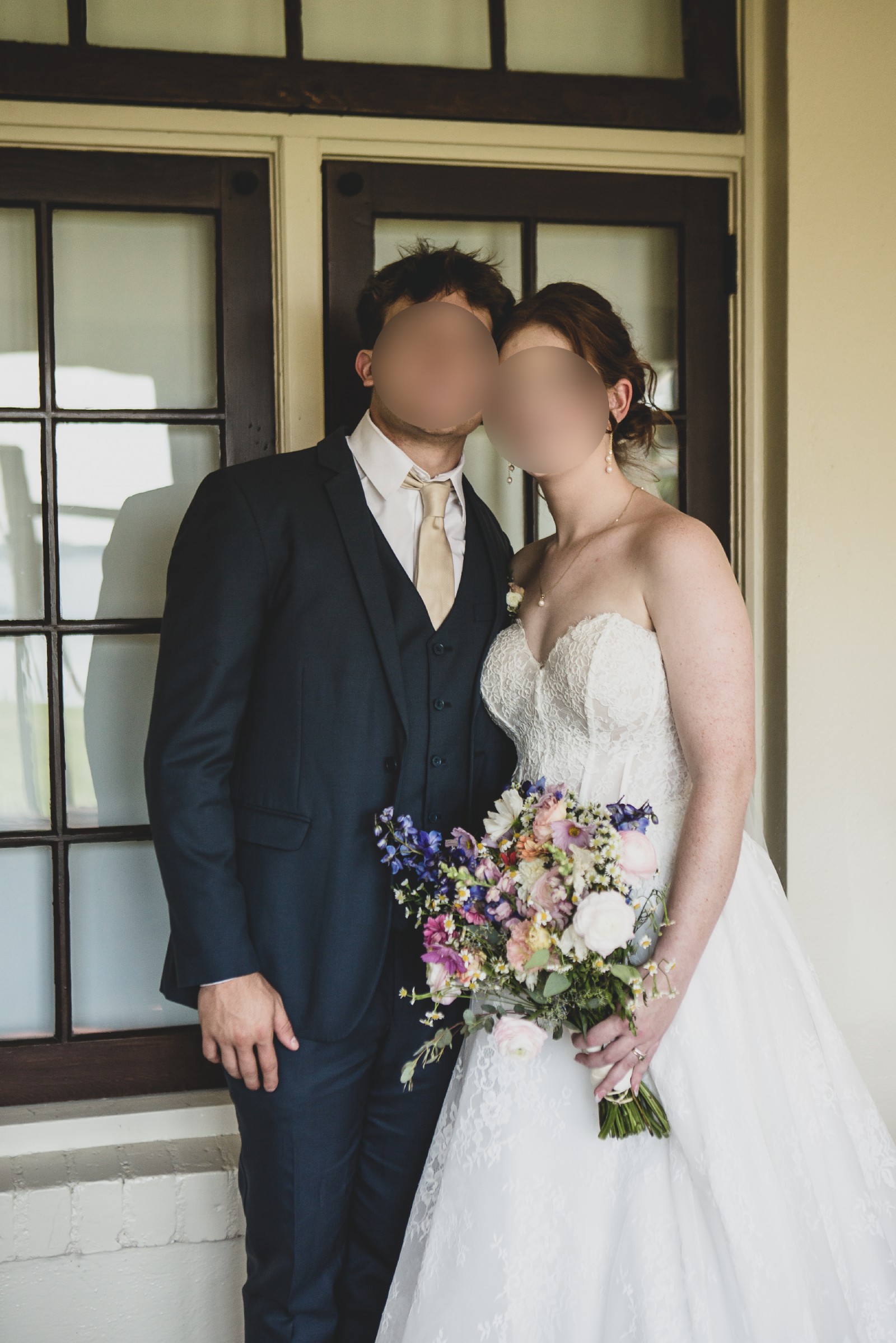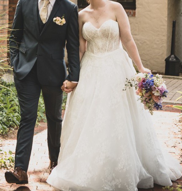The only alteration to the dress is a three point bustle.