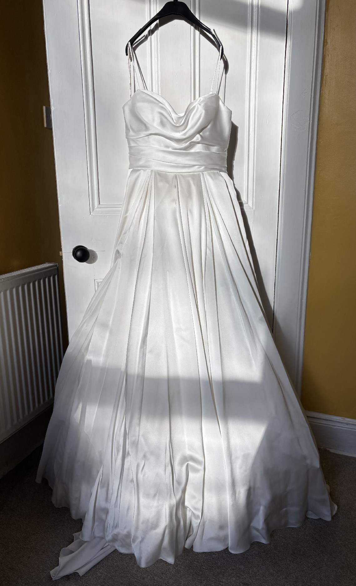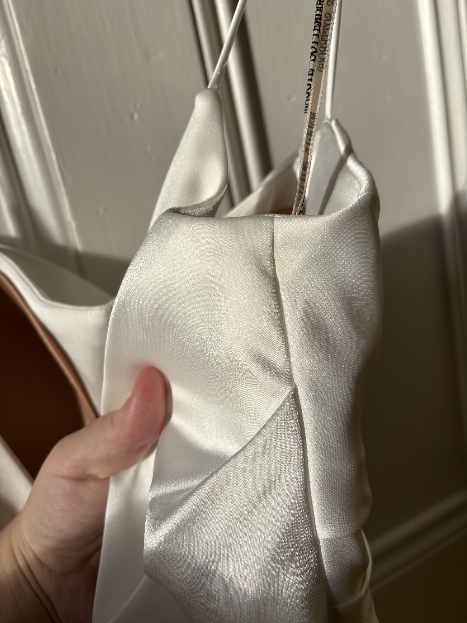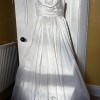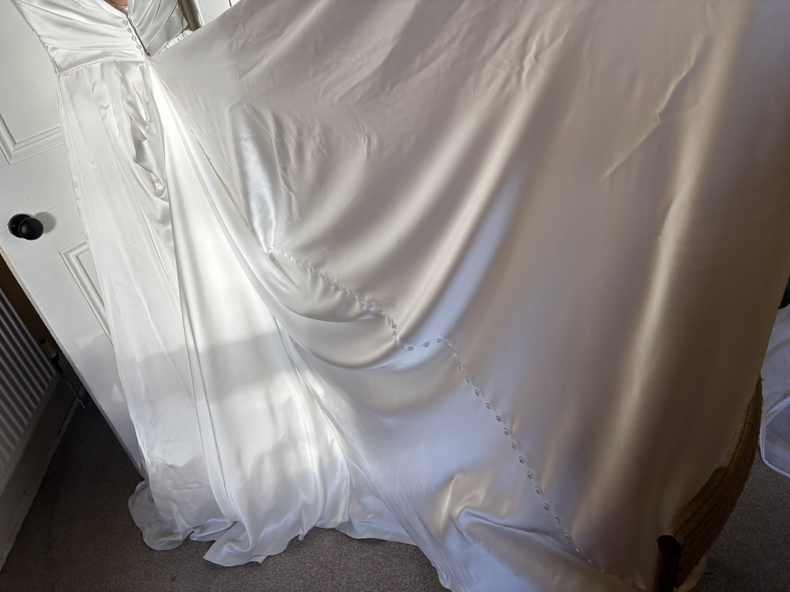 This dress has been unaltered except for two thin strands that have been added to form an optional bustle.