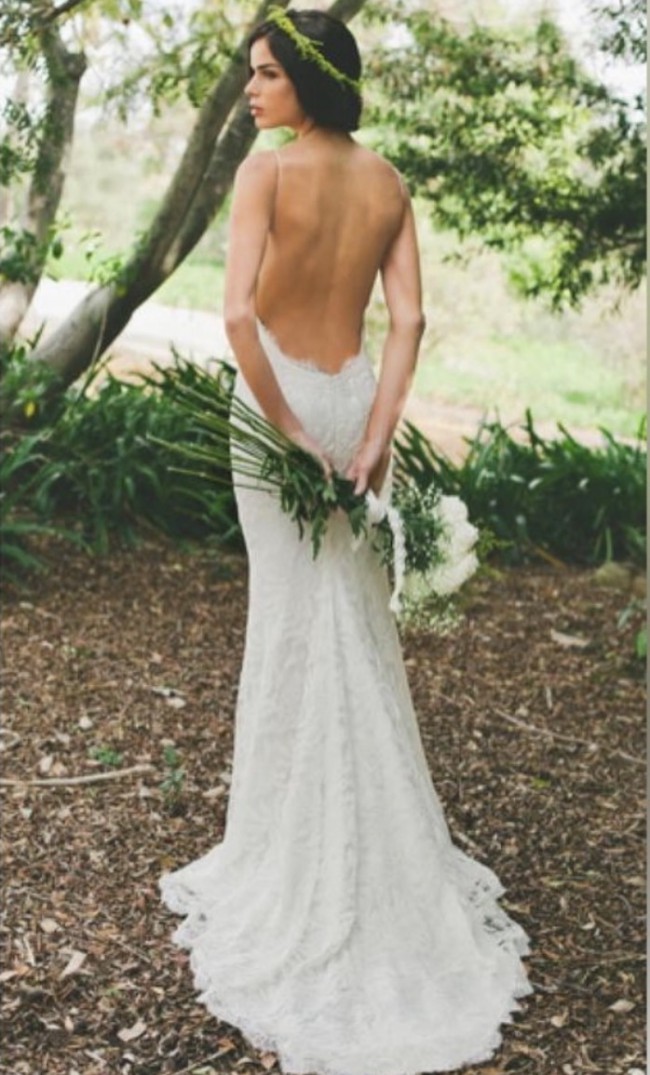 A diamond in the rough. The OG Katie May gown, now discontinued. Katie May Neu designed her younger sister's wedding gown, a sexy, figure hugging form with an entirely open back, which was unlike anything in the market at the time. It was pinned on Pinterest and quickly went viral.