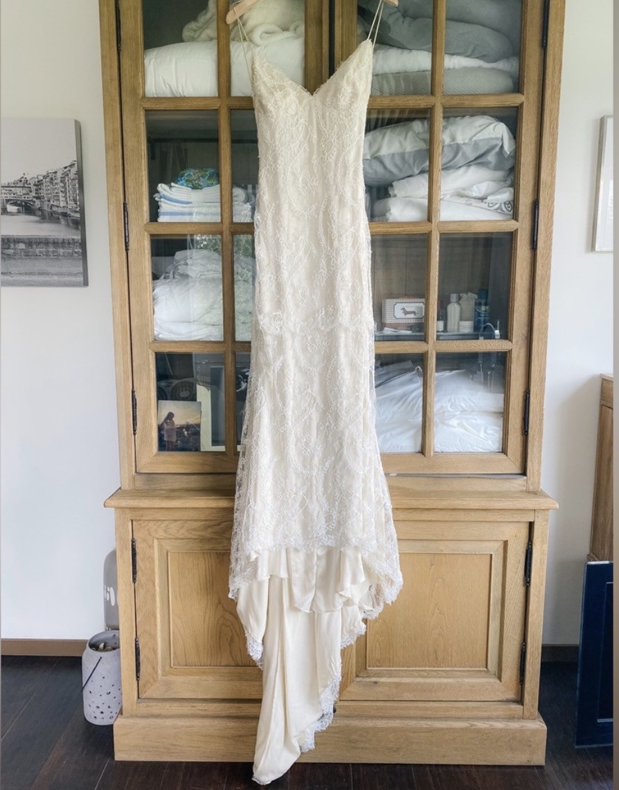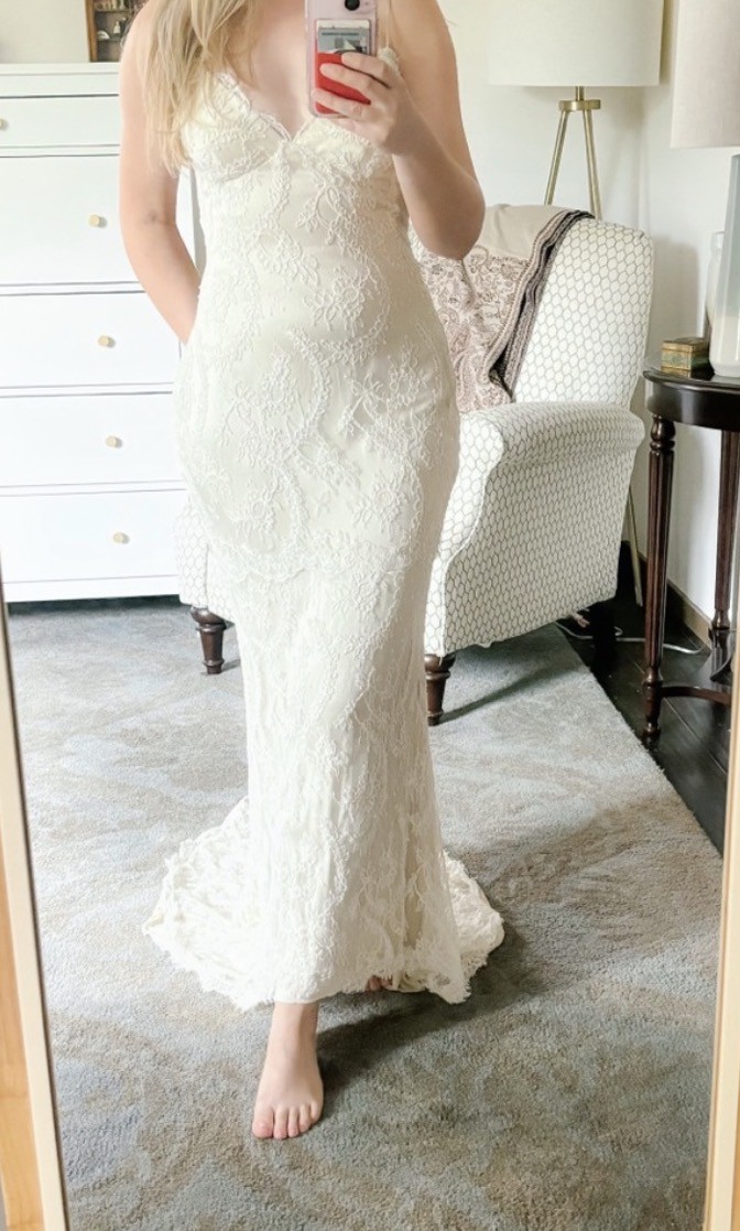I bought from someone else and ended up wearing something different due to a venue changed. Absolutely gorgeous dress. Impossible to find.