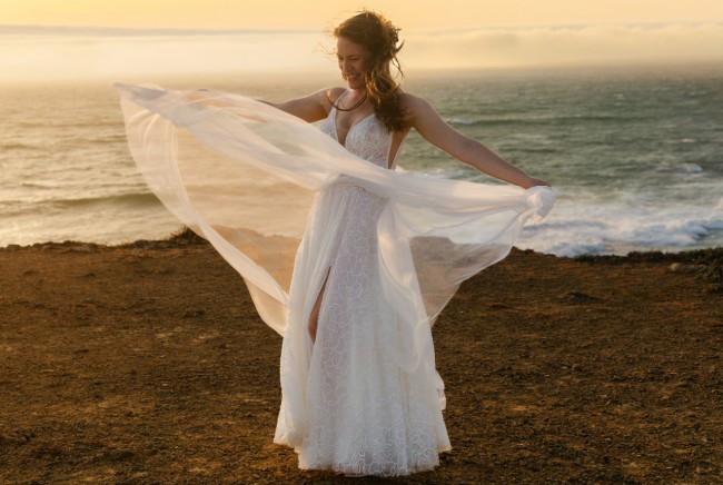 This stunning wedding dress was purchased at Herms Bridal in Warsaw, Poland and worn once for an intimate coastal wedding. It’s effortlessly romantic, lightweight, and incredibly comfortable - perfect for a beach, destination, or outdoor celebration.