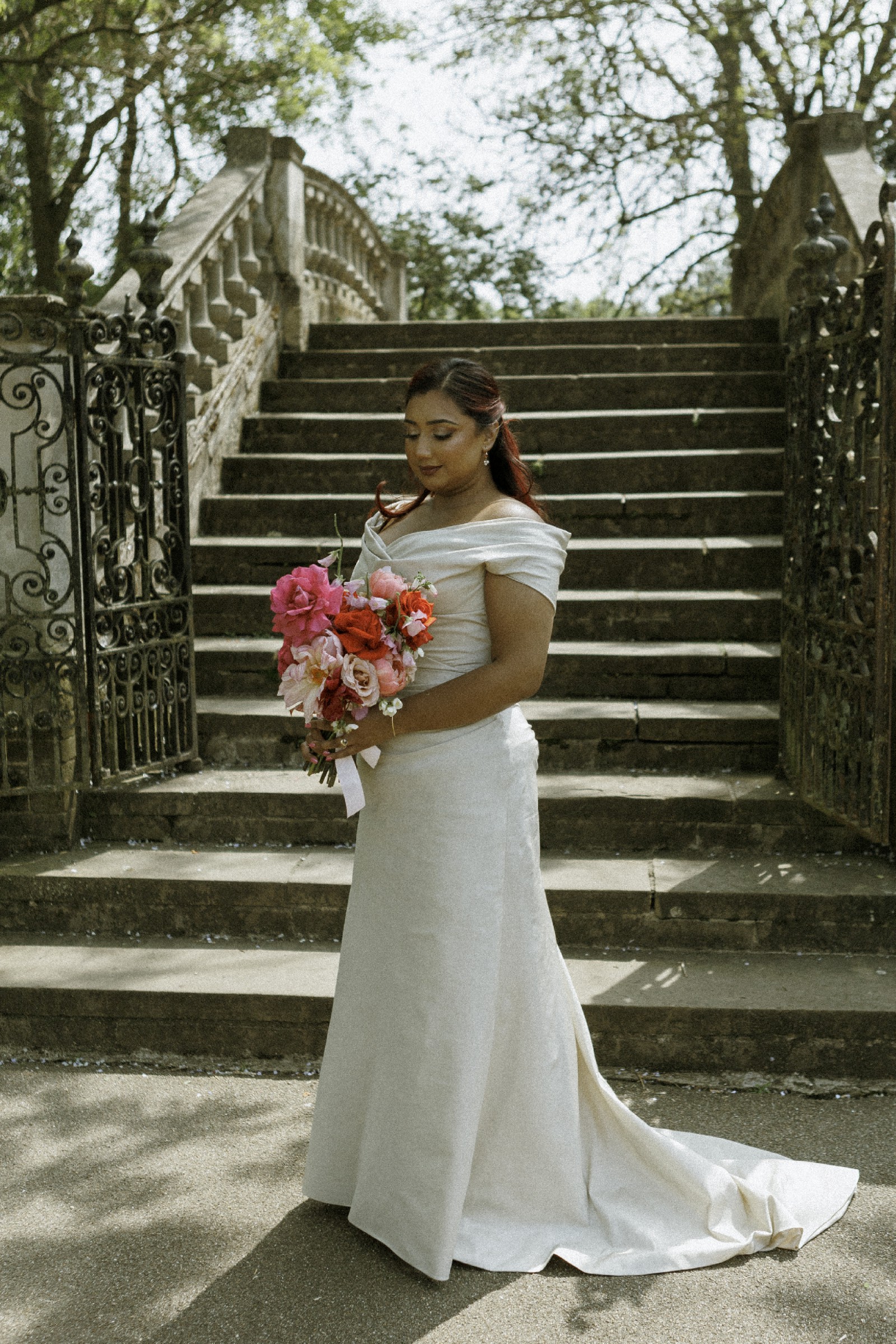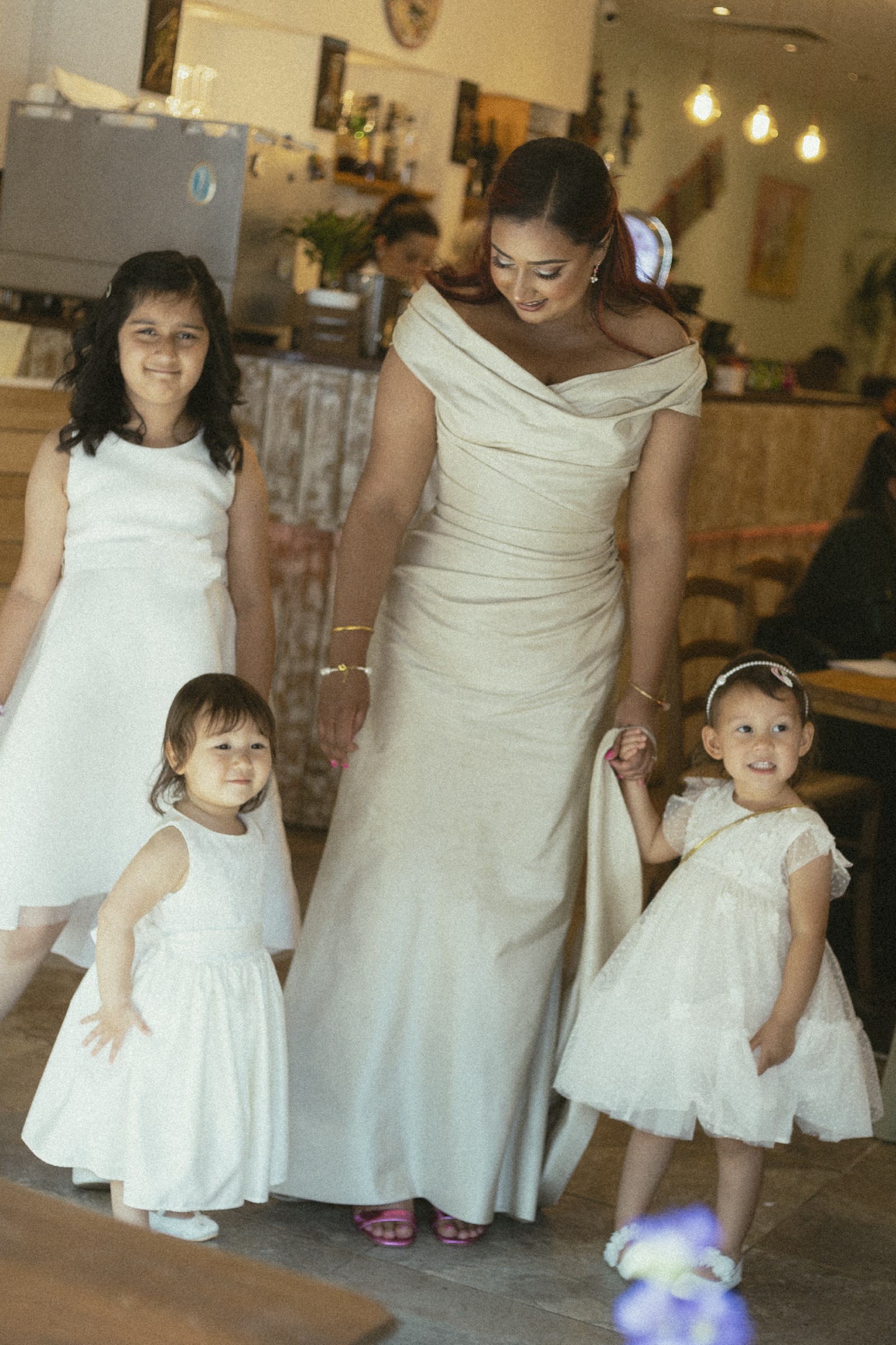 This custom bridal gown designed by Angelina Colarusso is nothing short of a dream come true. The elegant fit-and-flare silhouette beautifully accentuates the waist while offering a flattering shape that gracefully skims the hips. Crafted with love and attention to detail, this size 14 gown features an alluring off-the-shoulder neckline, adding a touch of romance and sophistication to your special day.