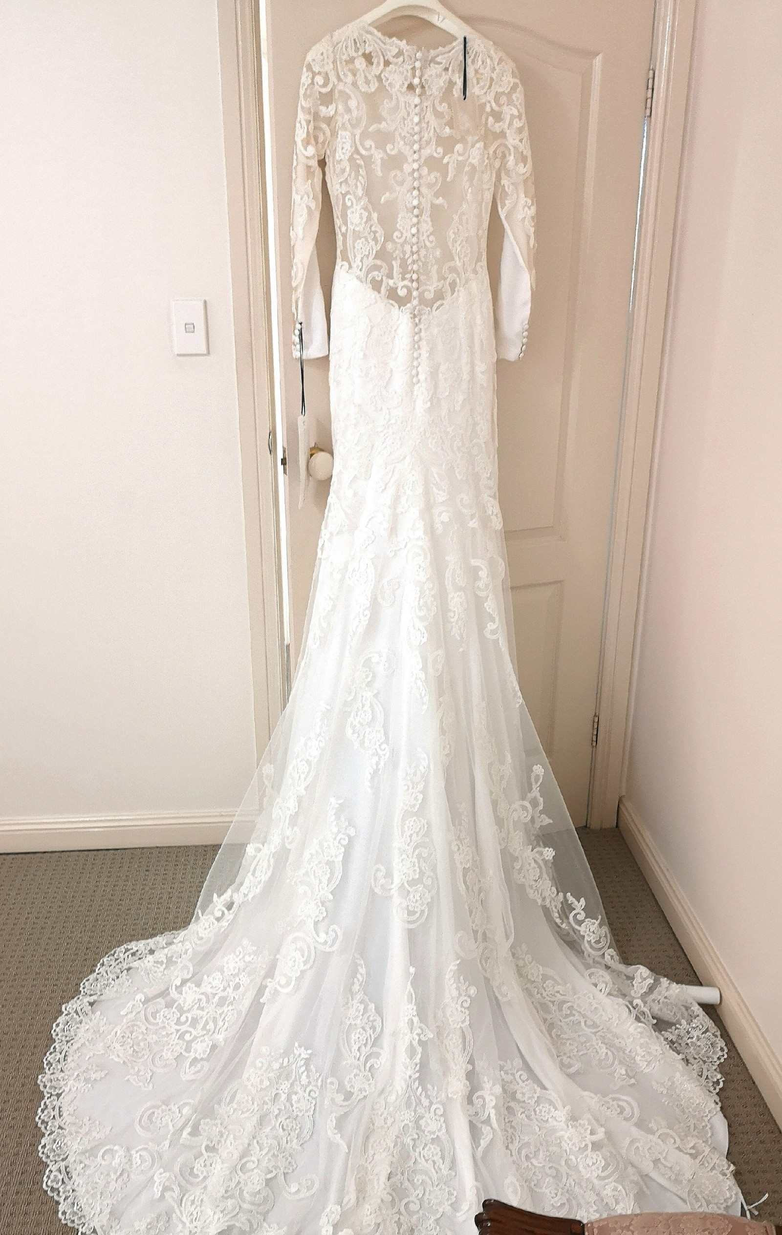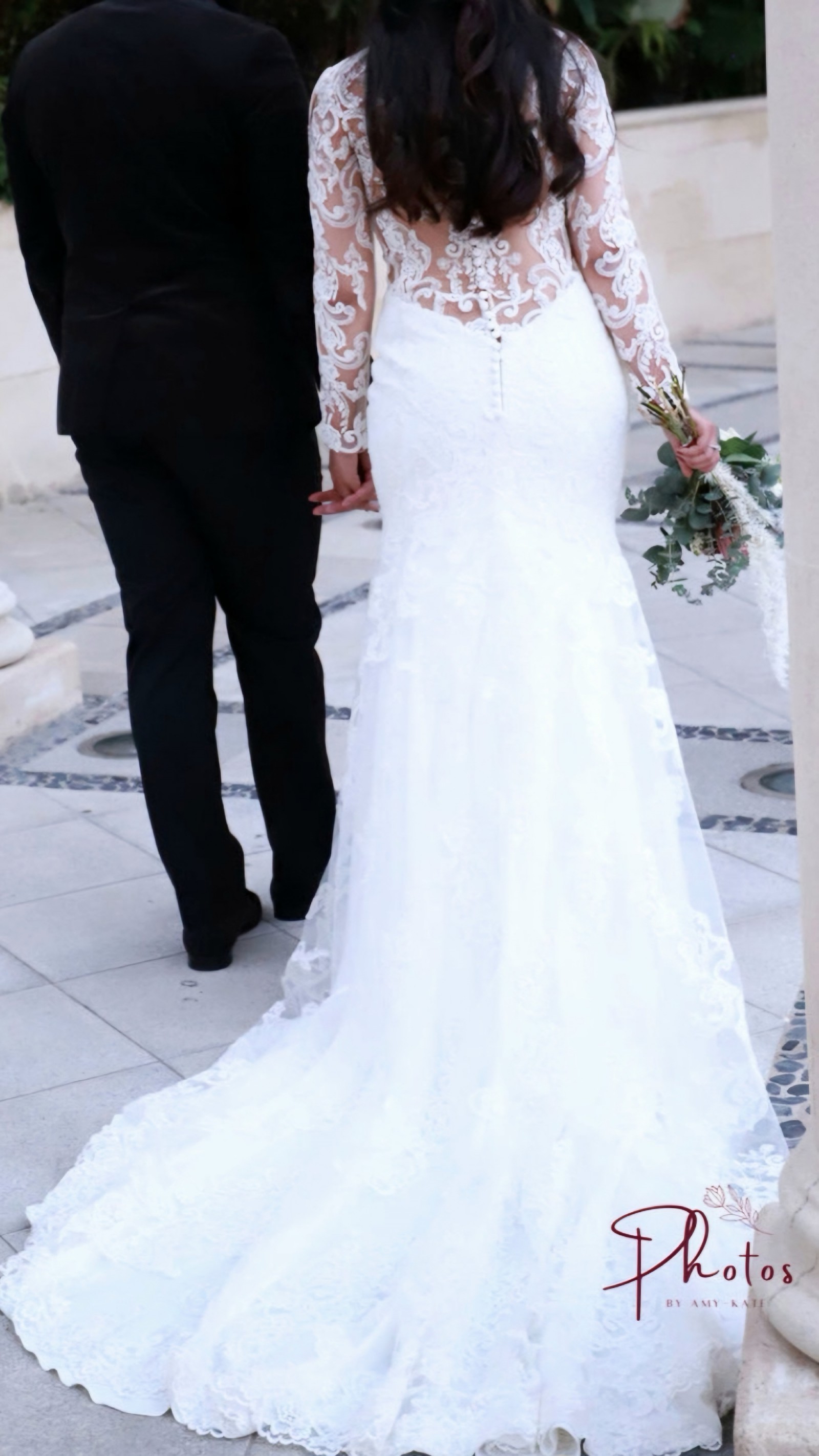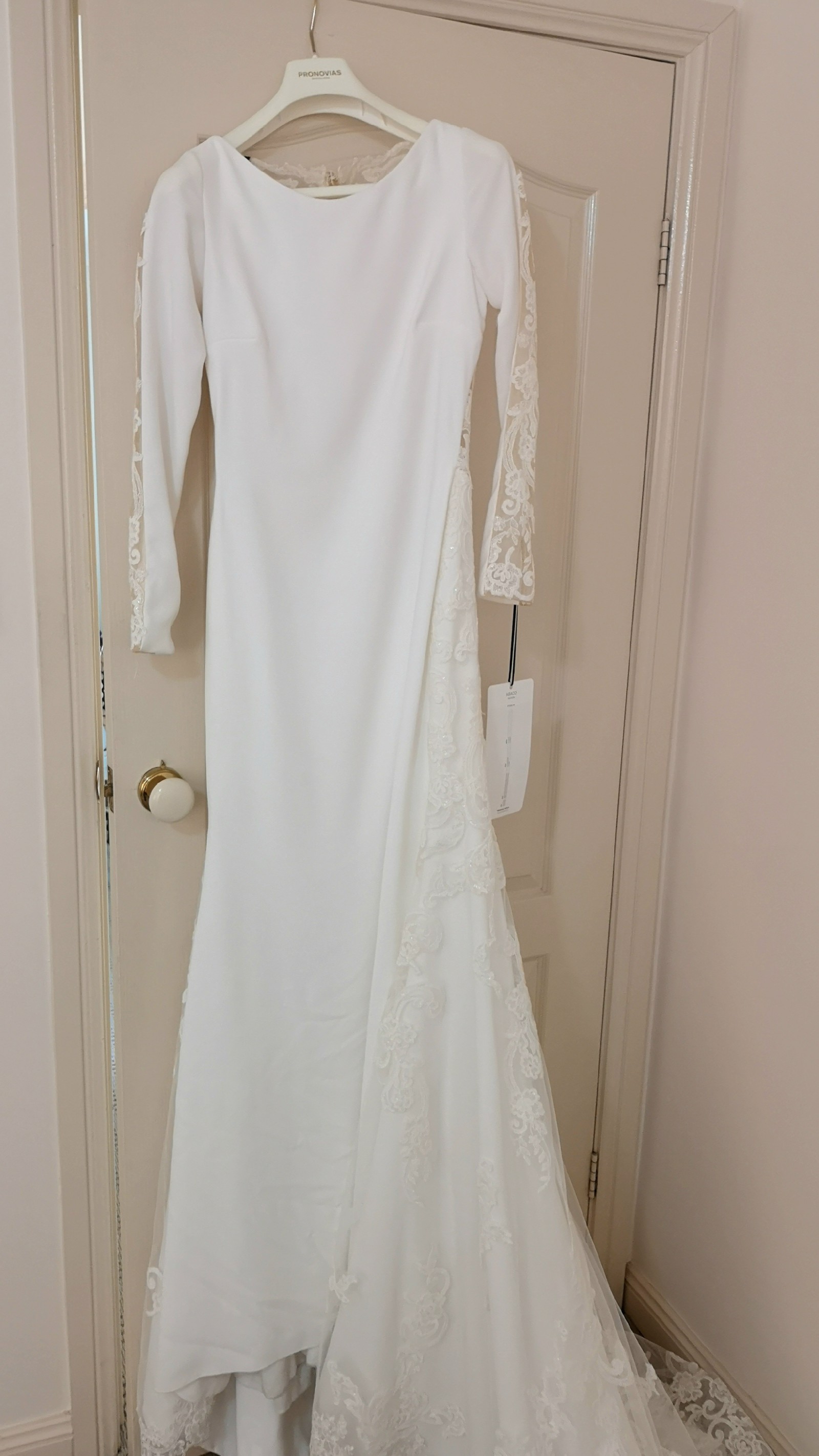 This enchanting Pronovias - The Collection St. Patrick wedding dress is the embodiment of elegance and sophistication. It has not been worn, other than for a 1 hour photoshoot (our wedding got cancelled, thanks to covid)!