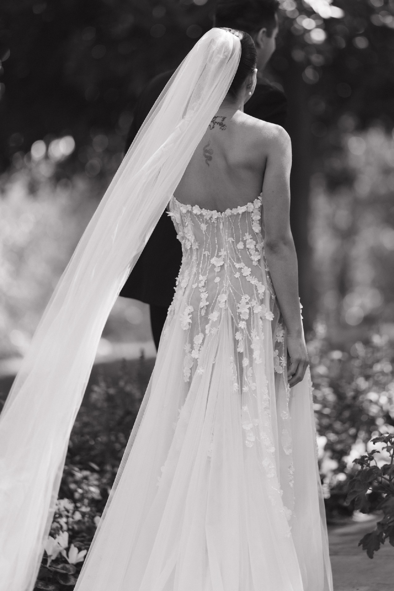 The A-line silhouette offers a flattering fit that allows for movement while maintaining an air of sophistication. I felt like royalty as the floor-length gown flowed gracefully with every step, showcasing intricate detailing that adds a touch of glamour. The low back design is both alluring and tasteful, striking the perfect balance for a memorable reveal during the ceremony.