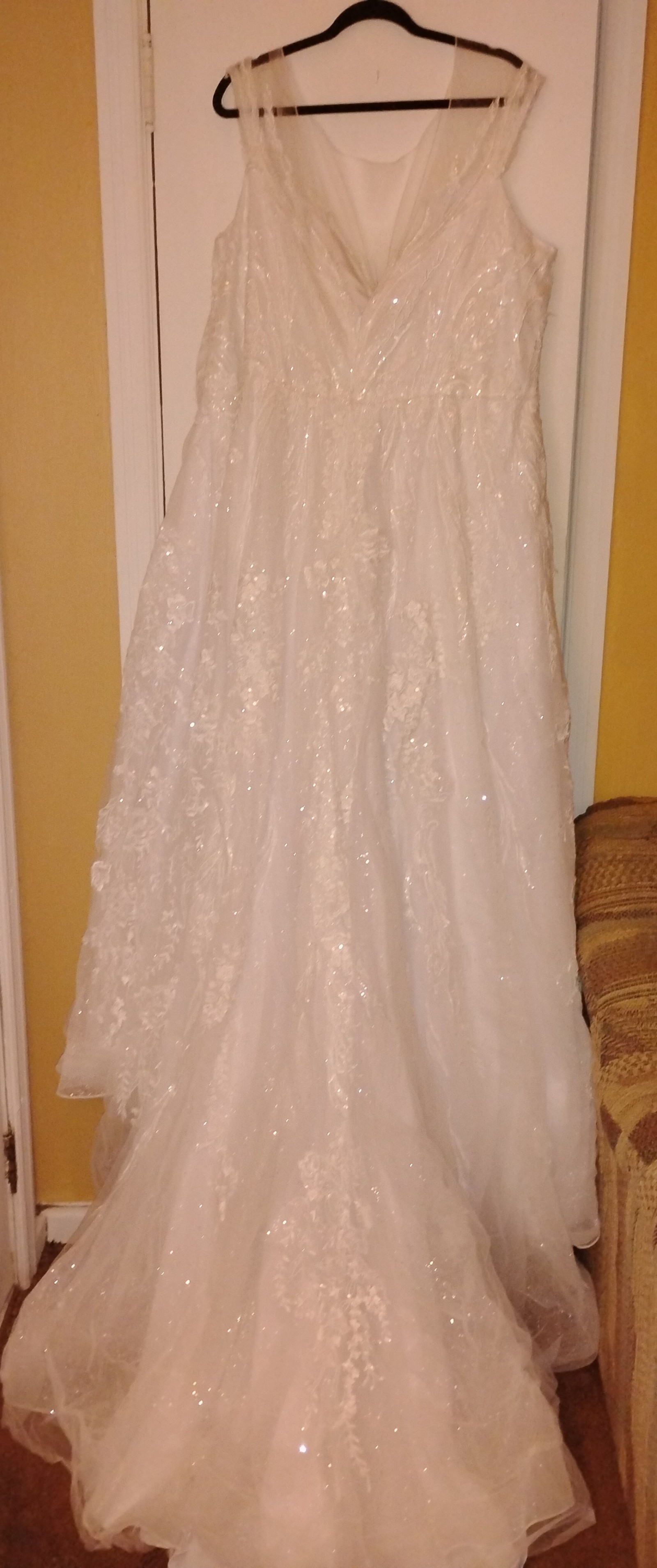 2023 Oleg Cassini wedding gown. Bought from David's Bridal. I originally bought this as my dress for my April 2026 wedding, however I ended up finding a dress that worked for me more than this one did.