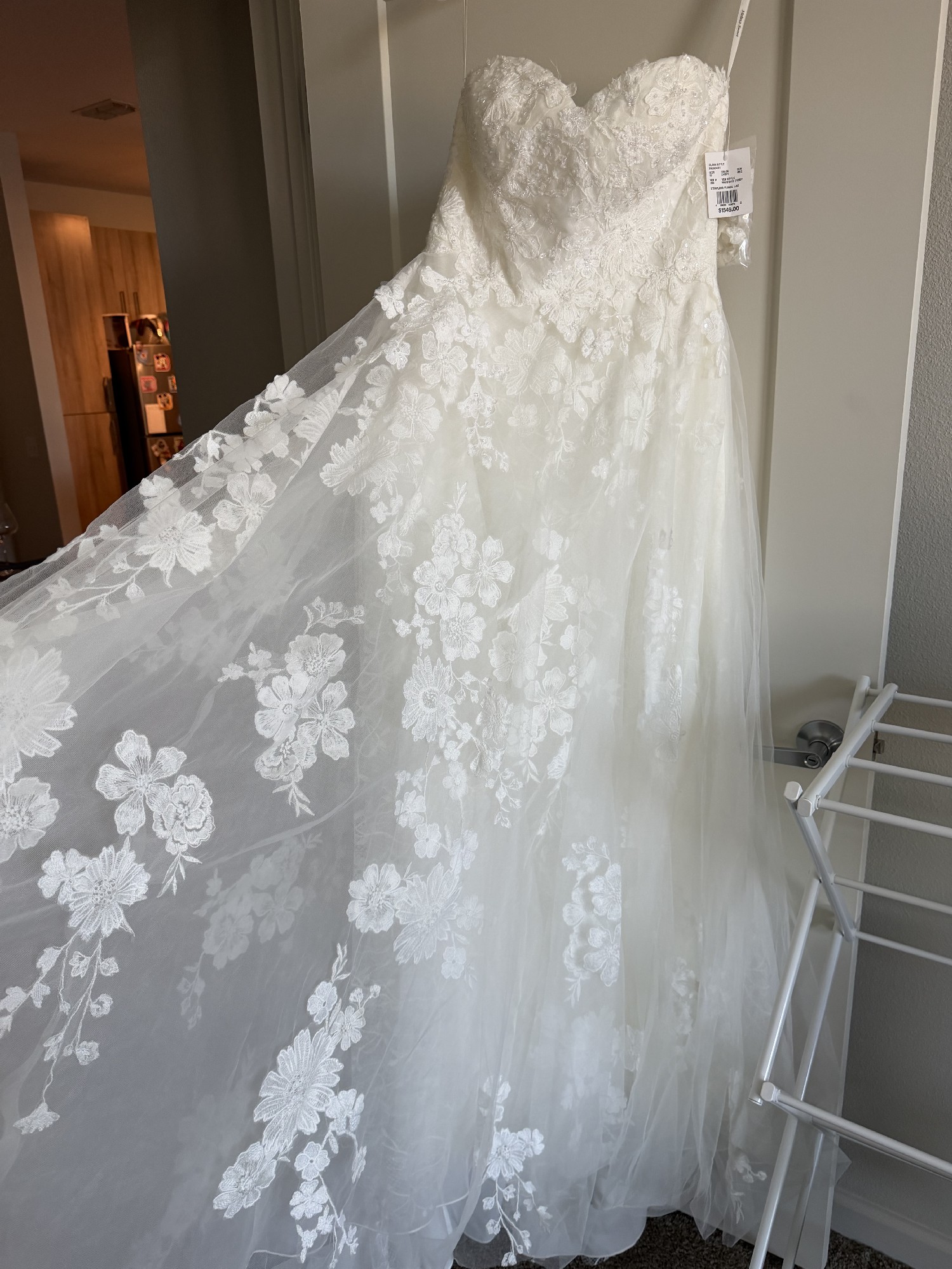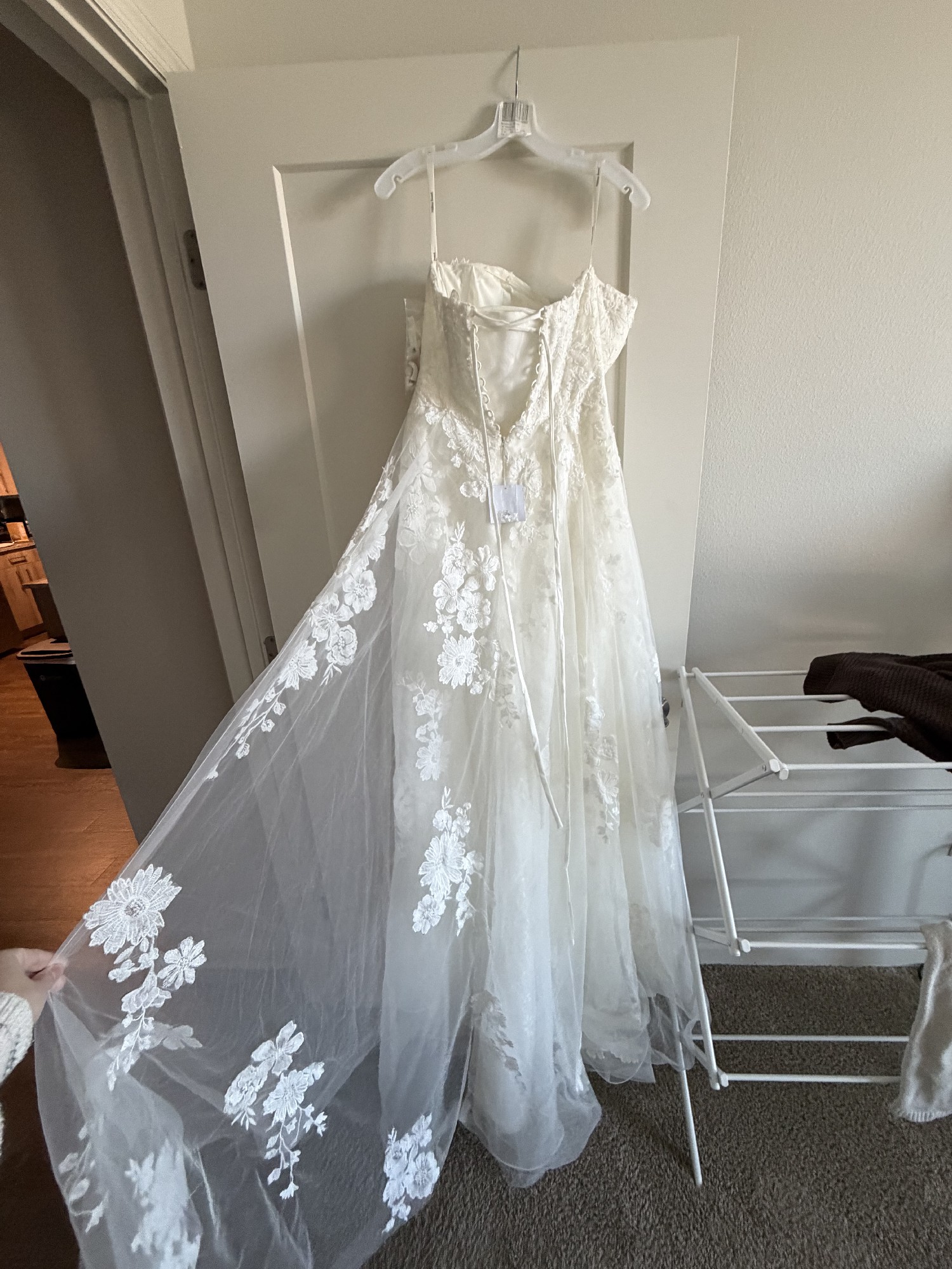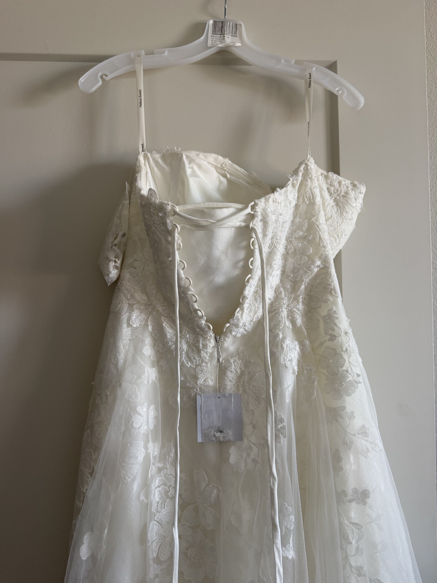 Beautiful Mellisa Sweet A-Line dress. It has many layers of lace with beading at the top & a corset back, so it can fit multiple sizes!