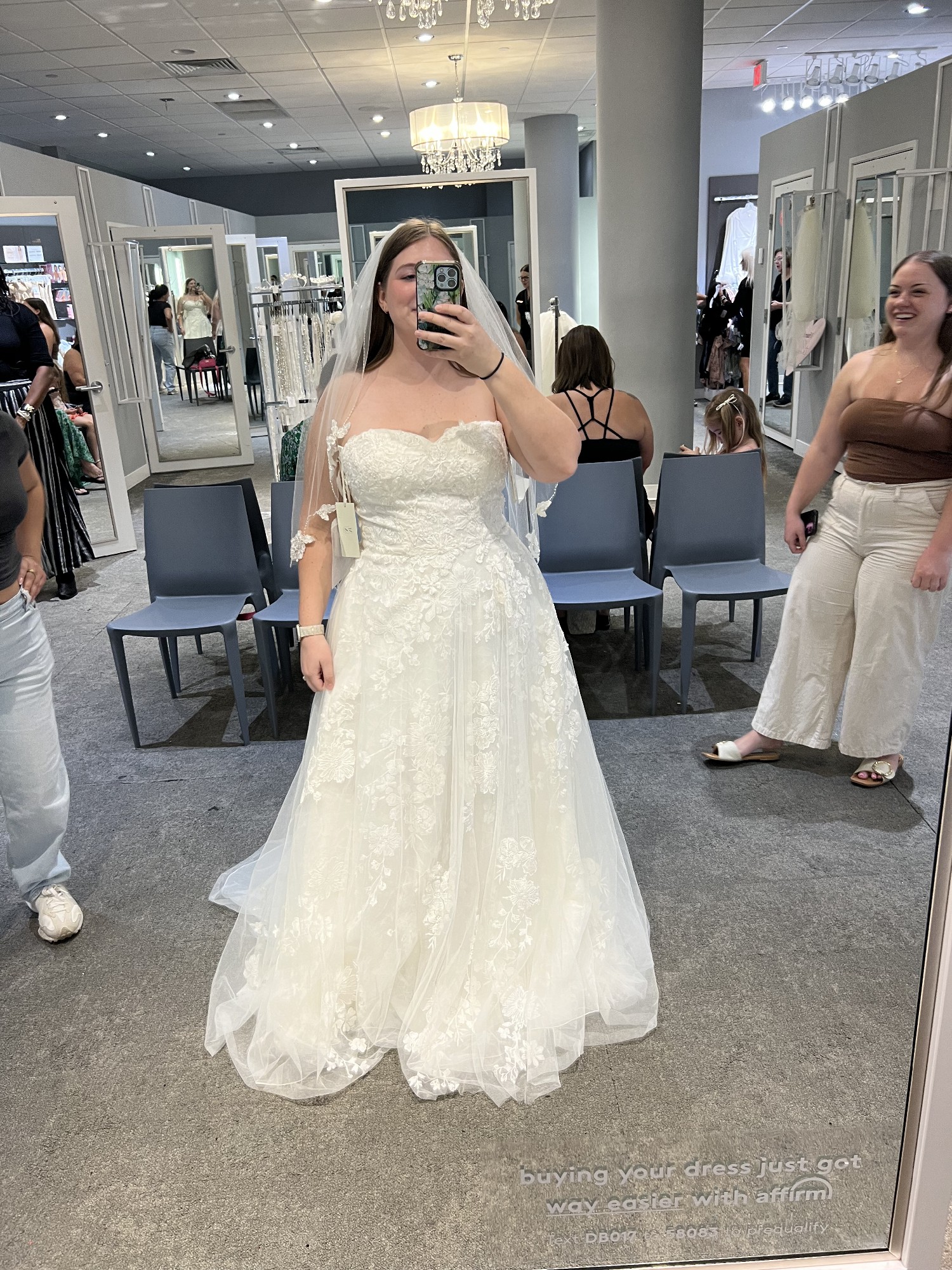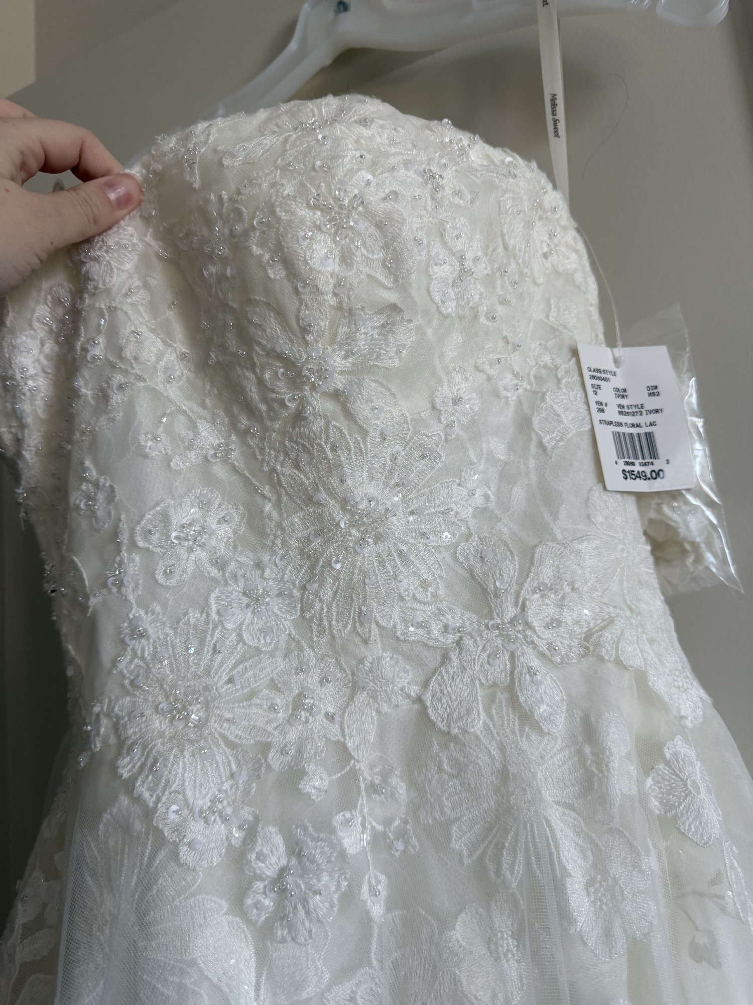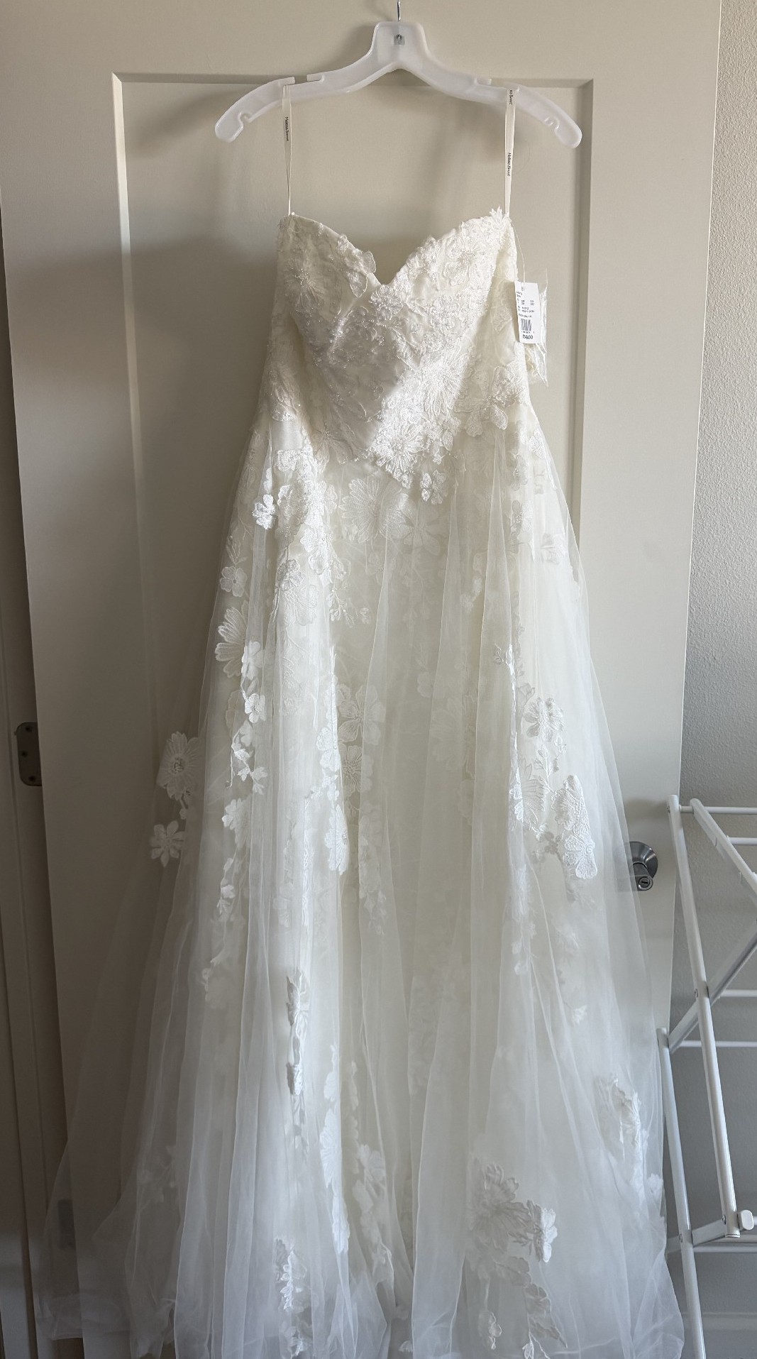 Beautiful Mellisa Sweet A-Line dress. It has many layers of lace with beading at the top & a corset back, so it can fit multiple sizes!