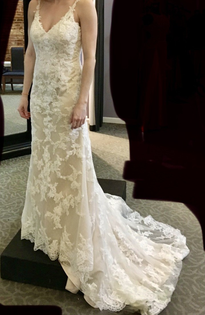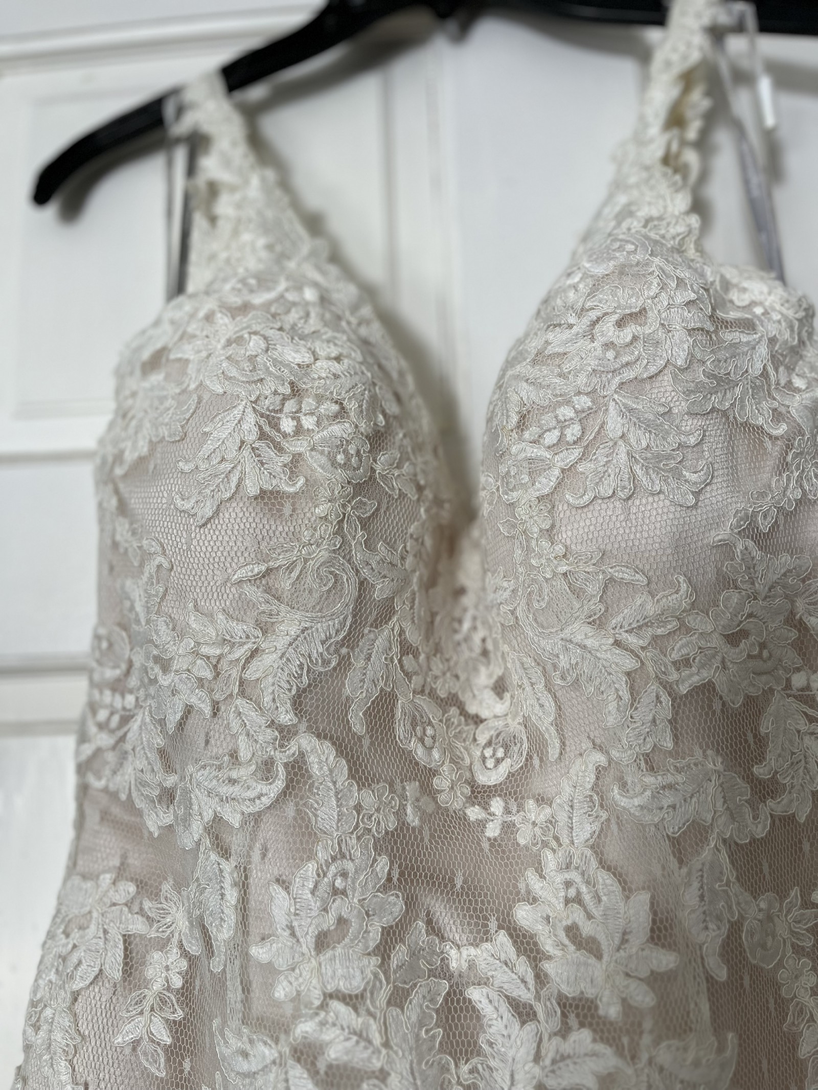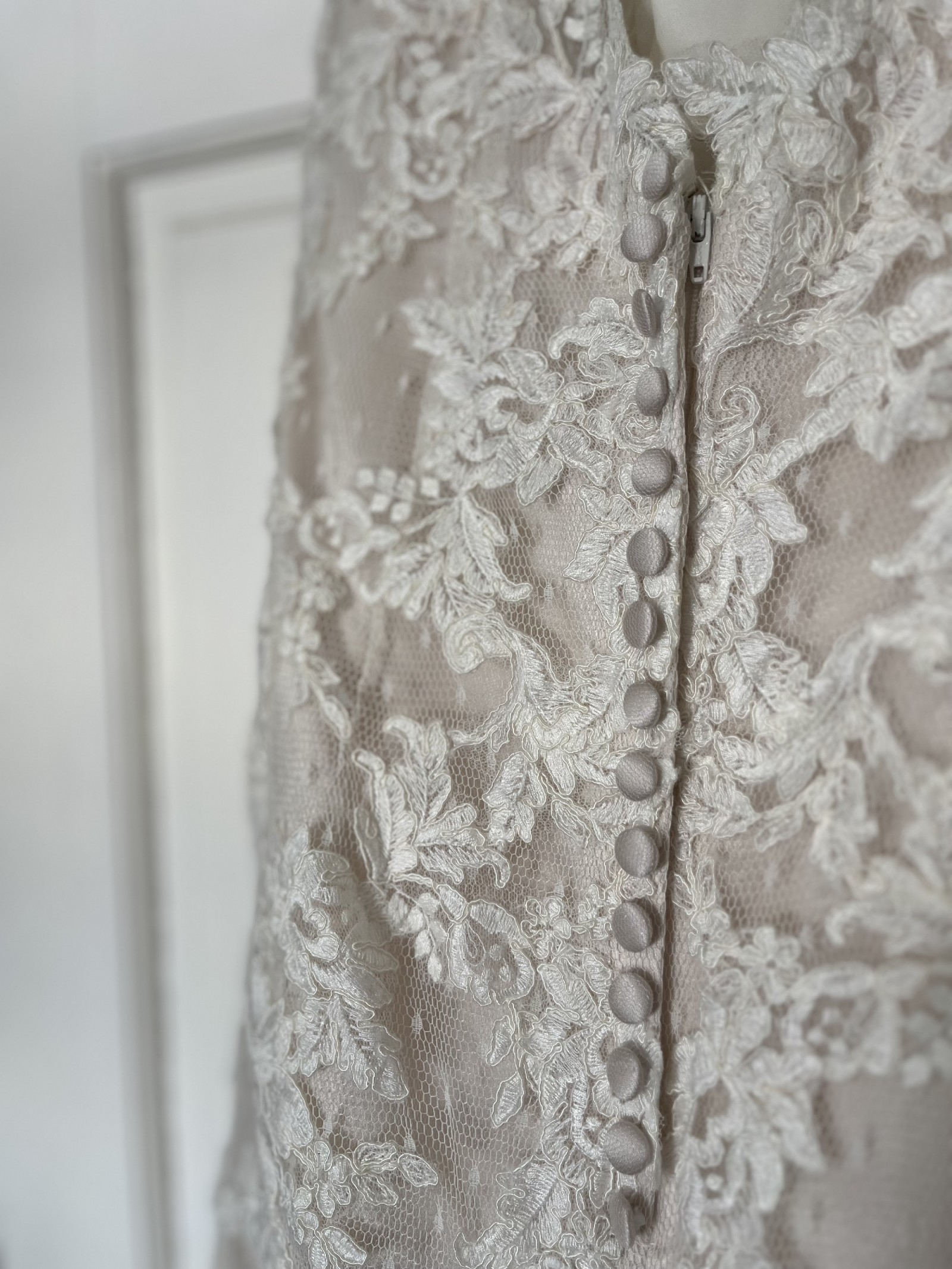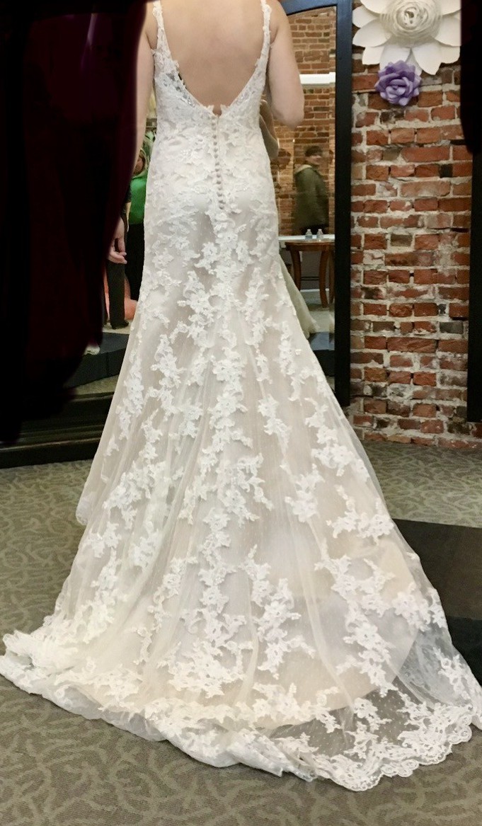 This enchanting Moonlight Bridal gown was the perfect companion for one of the most magical days of my life. With its breathtaking A-line silhouette, it beautifully flows and moves with grace, allowing me to feel both elegant and comfortable as I walked down the aisle. The delicate V-neckline adds a touch of sophistication while the low back creates a stunning feature that keeps the dress timeless yet alluring.
