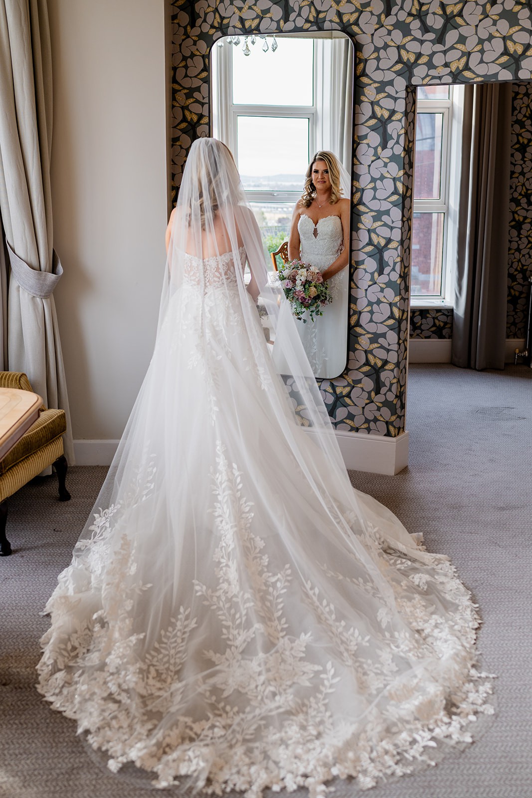 One of my favorite features is the sheer back, which added just the right amount of drama and allure. It was the perfect touch, revealing just enough while maintaining the dress’s overall elegance. Plus, the detachable sleeves can completely transform the look for both the ceremony and reception, allowing me to bring my vision to life in two stunning styles.