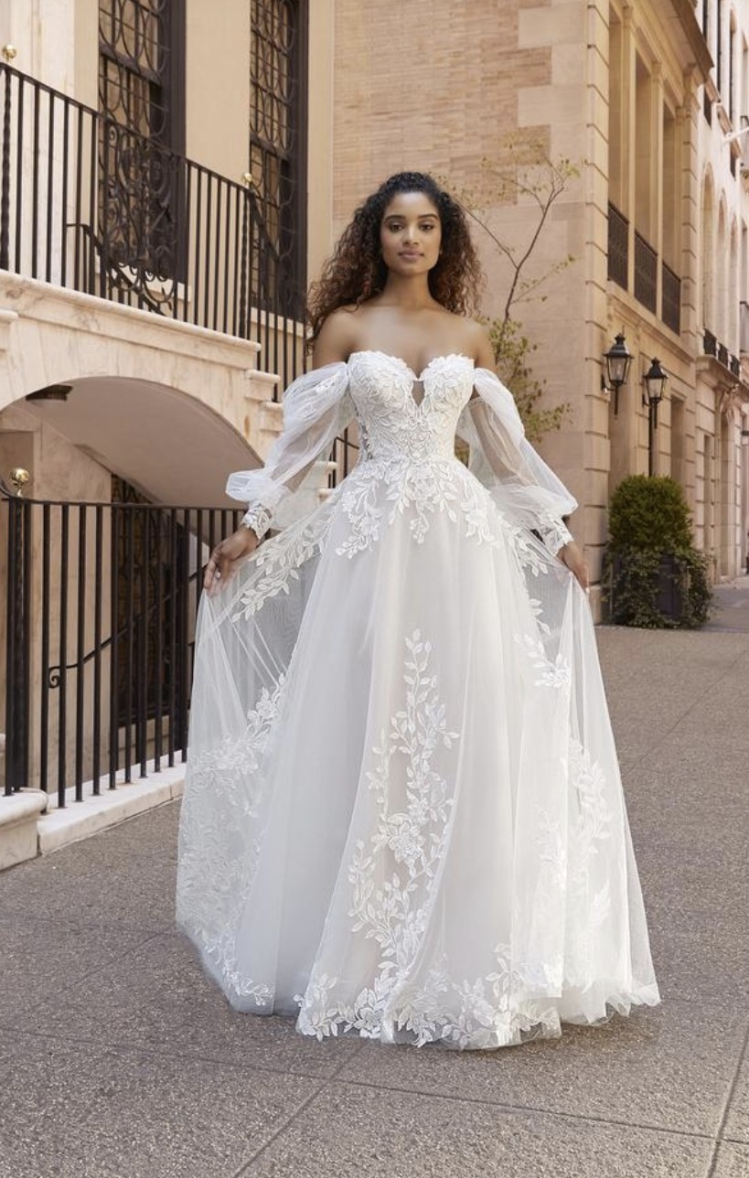 This Morilee wedding dress was truly a dream come true for my special day. The elegant A-line silhouette gracefully flowed with every step I took, making me feel like royalty. The soft, luxurious fabric draped beautifully, adding to the ethereal nature of the dress.